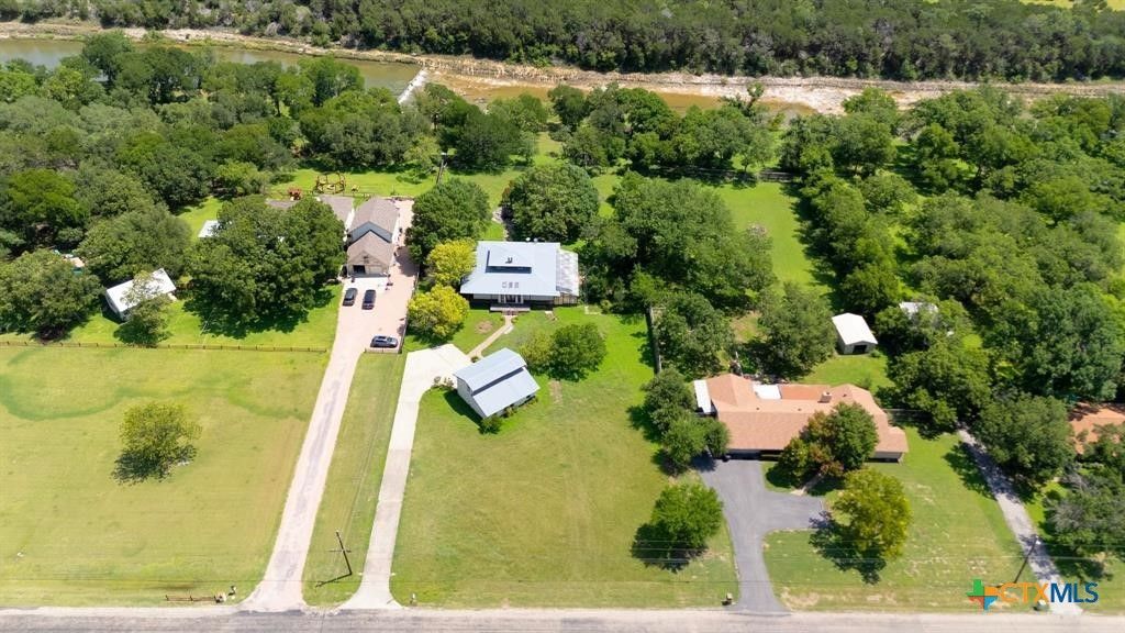 2.02 Acre Estate on the San Gabriel River! Enjoy direct river access right from your own property! This 3,155 square foot home is ready for a complete renovation by Magnolias Chip and Joanna Gaines to allowing you to personalize it to your taste. The home features beautiful wood accents throughout, soaring ceilings enhanced with wooden beams, and ample windows that invite an abundance of natural light. The living area features a glass-enclosed fireplace, offering relaxing views of the rear of the property. The generous primary suite is situated on the main level and is equipped with a spacious bath with a walk-in shower, large soaking tub, and a large closet with plenty of built-in storage. Wine Connoisseur? Access the expansive lower-level wine cellar from the dining area by descending a charming winding staircase. This inviting wine cellar features wood-planked ceilings, along with a serving bar and built in seating. Upstairs, discover an cozy living area complete with a fireplace, providing additional living or entertaining space. The grounds are graced with beautiful, towering trees that provide shade, and you can access the San Gabriel River directly from the back of the property, where you can unwind to the soothing sounds of the flowing water. Moreover, the two-car garage features an apartment above, equipped with a kitchenette, living area, bedroom, and full bath?perfect for guests. Estate sale, being sold as-is.