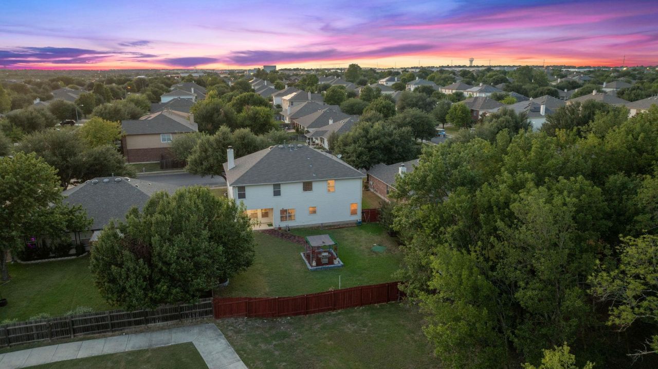 Highland Park North ? This spacious 5-bedroom, 3-bath home with a 2-car garage offers generous living space inside and out, and backs to a greenbelt with a walking trail and no neighbors behind! A large shade tree and covered front porch create a welcoming entrance. Inside, the flexible floor plan includes two versatile spaces off the entry?perfect for a formal dining, playroom, or second living area?plus a main living room with a cozy gas fireplace that opens to the kitchen. The kitchen is well equipped with stainless steel appliances, abundant cabinetry, a pantry, and a casual dining nook. Upstairs, the primary suite features dual oversized walk-in closets and a private bath with a soaking tub, walk-in shower, and double vanity. Youll also find a spacious game room or second living area upstairs, along with three additional bedrooms. The backyard includes a covered patio and fenced yard with peaceful greenbelt views. Highland Park North is known for its community amenities, including a pool, park, playground, and basketball court, along with scenic greenbelts and trails. Conveniently located near shopping, dining, and local parks, this home combines comfort, convenience, and community living in a prime location. For more info, go to: https://wkf.ms/42bRFP