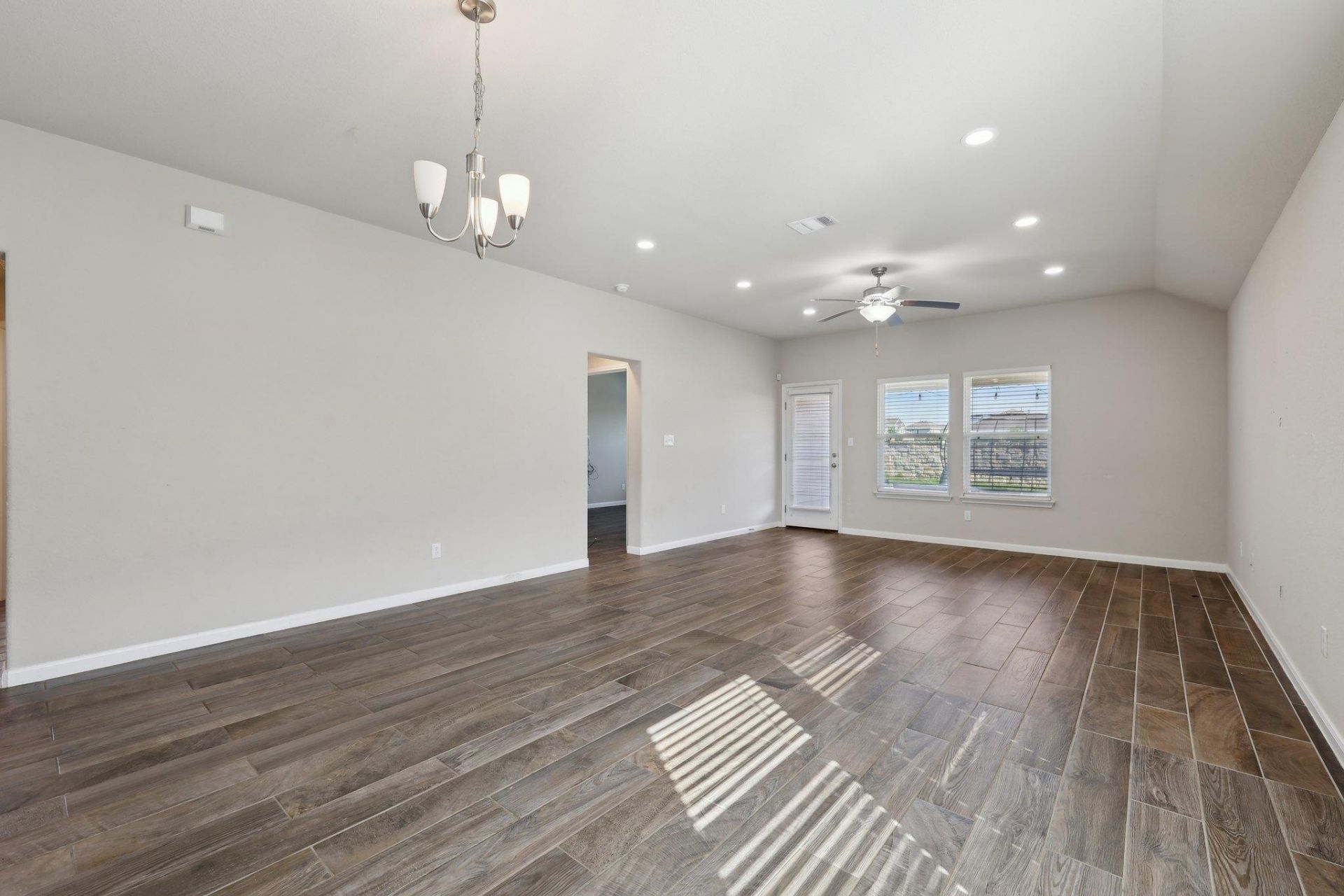 One of the best neighborhoods in Georgetown because of its amazing amenities!! As a homeowner you will have access to a beautiful amenity center, fishing pond, walking trails and game courts. This home enjoys open plan living. The kitchen has beautiful dark wood cabinets with a large island and stainless steel appliances and includes the fridge. Outside the backyard enjoys a private covered patio and enjoys the privacy of no neighbors behind. Don't miss your chance to live in this amazing neighborhood at an affordable price!