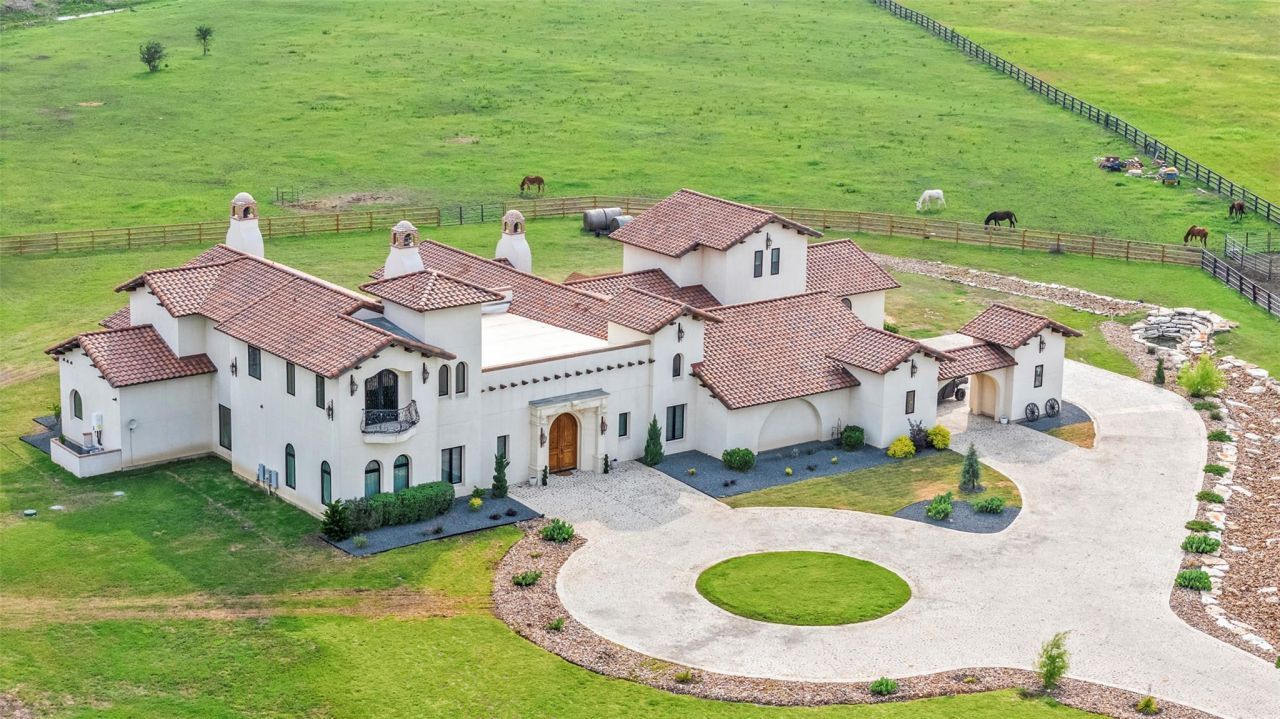 Set on over 11 pristine acres within a gated 16-home enclave, this extraordinary residence redefines Georgetown living with a level of scale, craftsmanship, and authenticity rarely seen in the region. Thoughtfully inspired by traditional hacienda architecture, the home showcases artisan elements sourced directly from Mexico?arched brick ceilings, Saltillo tile flooring, custom Jalisco chandeliers, hand-carved Cantera Espinoza stonework, & rich mesquite doors, all working in harmony to evoke timeless elegance.The main level offers seamless indoor-outdoor living with a dramatic receiving room that opens to a covered patio and courtyard. A gourmet kitchen anchors the right wing of the home, featuring a Carrera stone vent hood, copper farmhouse sink, and cedar-beamed ceilings that extend into the family room and adjacent breakfast area with peaceful views of fields and a pond on the property.Two of five generously appointed bedrooms are on the main level, including an expansive primary suite with fireplace and nearby play area. Three upstairs BDRMs include an attached guest suite with separate entrance that's tucked away privately above the large gameroom. Two more upstairs BDRMs have immediate access to a media/TV room and rooftop area. This property was built for comfort and utility: two tankless water heaters, a tornado shelter, whole-house generator setup, septic system, and a massive game room with motor court access and a steel-door safe. The grounds are fully fenced for horses or other animals, with a tranquil pond at the rear of the property for fishing or relaxation, plus a charming chicken coop for a touch of rural lifestyle.With Georgetowns rapid growth, thriving historic downtown just 6 miles away, & proximity to major employers like Samsung and Tesla, this exceptional estate offers a rare opportunity to own a private retreat with character, scale, & investment appeal?just minutes from city conveniences but worlds away from ordinary.