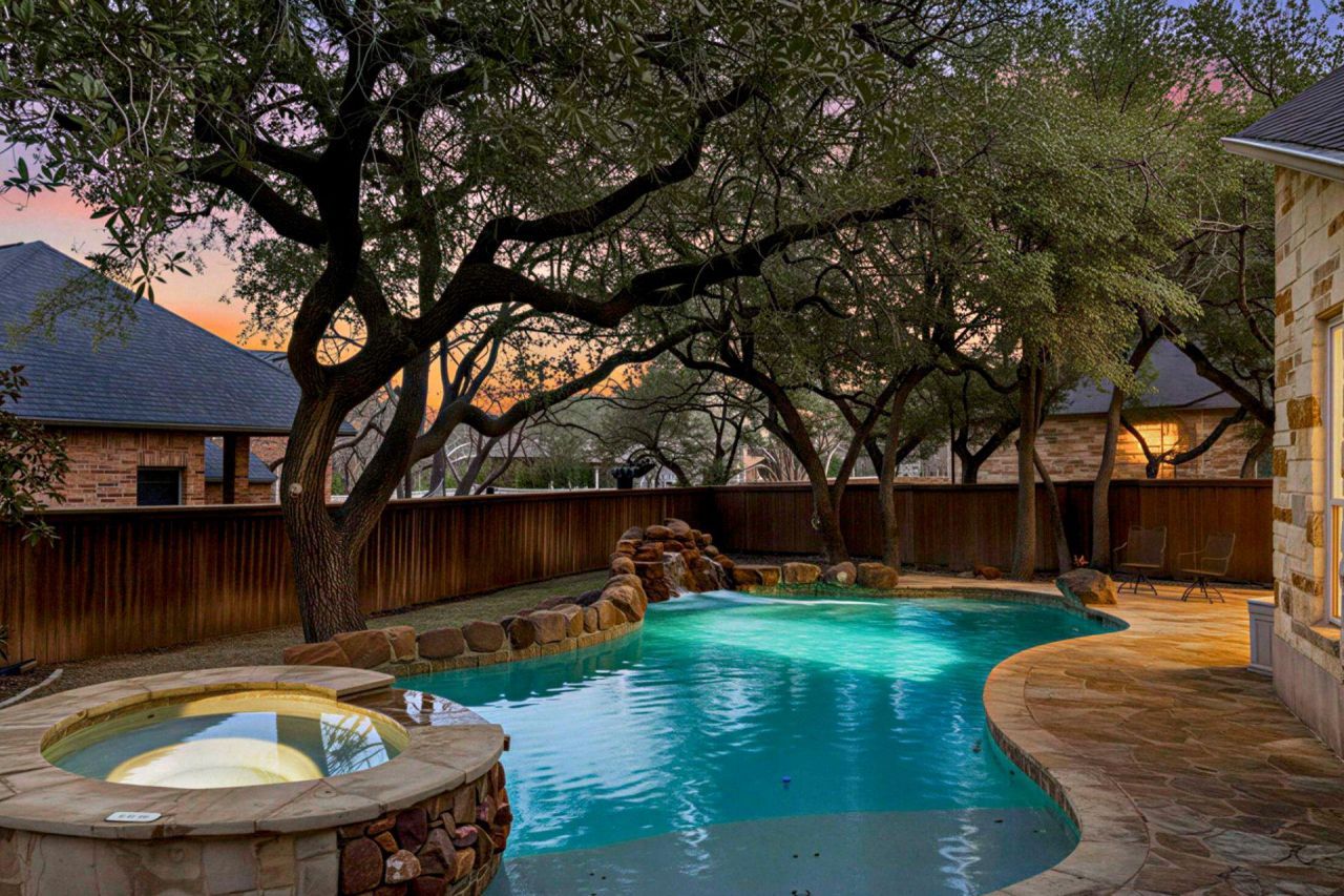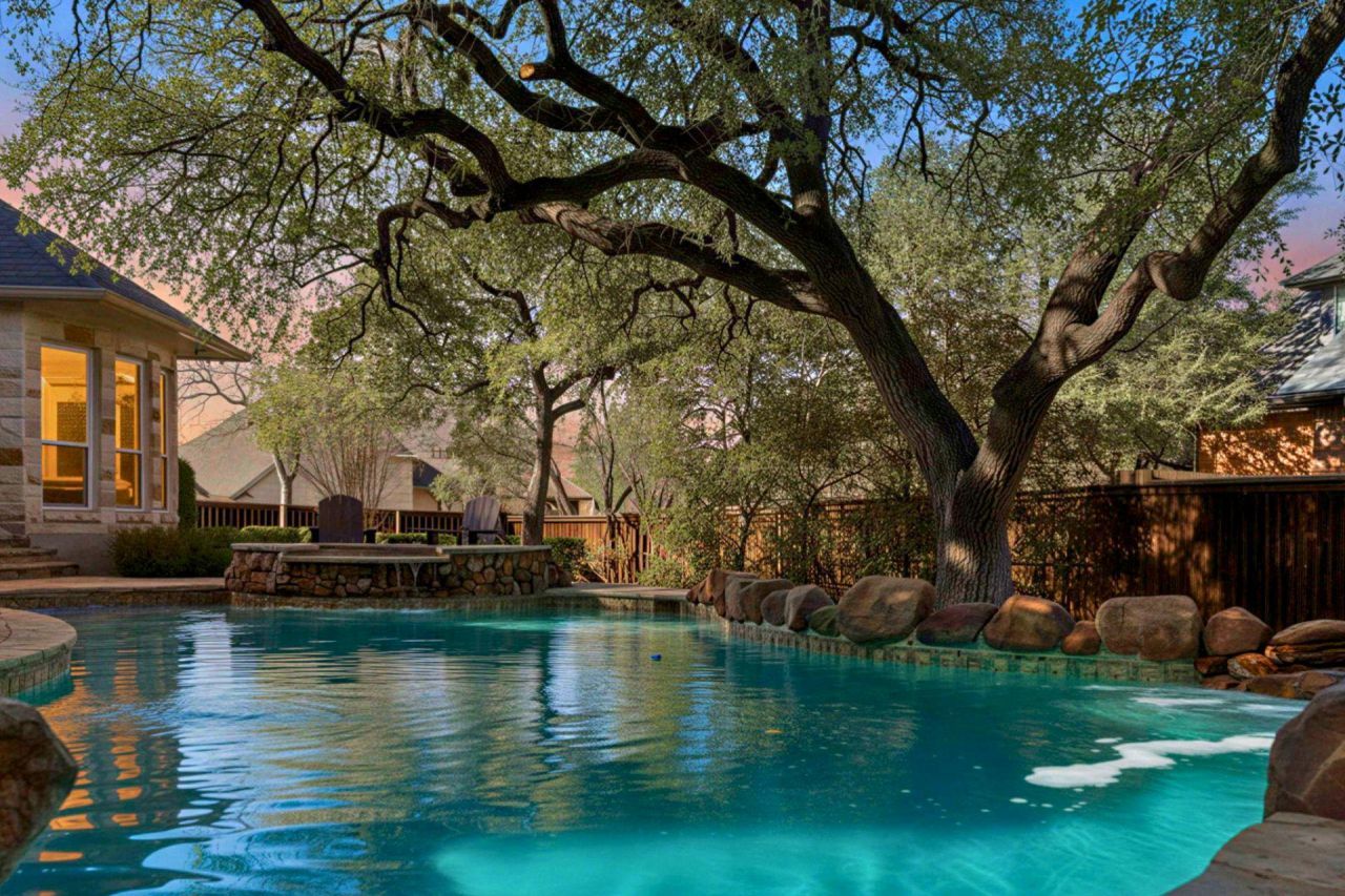Your Circle C Oasis awaits. 4491 sq ft of elevated living in one of the best cul-de-sac locations Hielscher has to offer. This exceptional home combines luxury, efficiency, and lifestyle in every detail. Enjoy 37 paid-off solar panels, energy-efficient Andersen double-pane argon-filled windows, and a Class 3 architectural shingle roof that was completed 2/28/2026. Making this property as smart as it is stunning.The backyard is a true retreat with an 8-foot-deep, well-maintained pool, hot tub, Oklahoma stone surround, mature trees, and a large covered patio with two seating areas; perfect for entertaining or relaxing year-round.Inside, youll find two spacious living areas, two dining spaces, and a chef-inspired kitchen featuring a gas stovetop with stone surround and a black granite island with bar seating. The primary suite is conveniently located downstairs, along with an office, while upstairs offers three bedrooms and 2 flex spaces ideal for a media room (with surround sound), kids toy haven, or game room. Ceiling fans in every room enhance comfort throughout the home.Additional features include 6-inch gutters, four exterior cameras, a three-car garage, wood blinds, side-yard exterior equipment storage with dual backyard gate access, and an HVAC system replaced in early 2020 with a germicidal UV light.Located just 0.2 miles from the Circle C Community Center with trails, parks, and pools, and 0.5 miles from Clayton Elementary, walking distance! This home delivers both convenience and lifestyle in one of Austins most desirable communities.Move-in ready, energy-efficient, and designed for luxury living; this is Circle C at its finest. Seller will need lease back. Buyer and Buyers agent to verify all information.