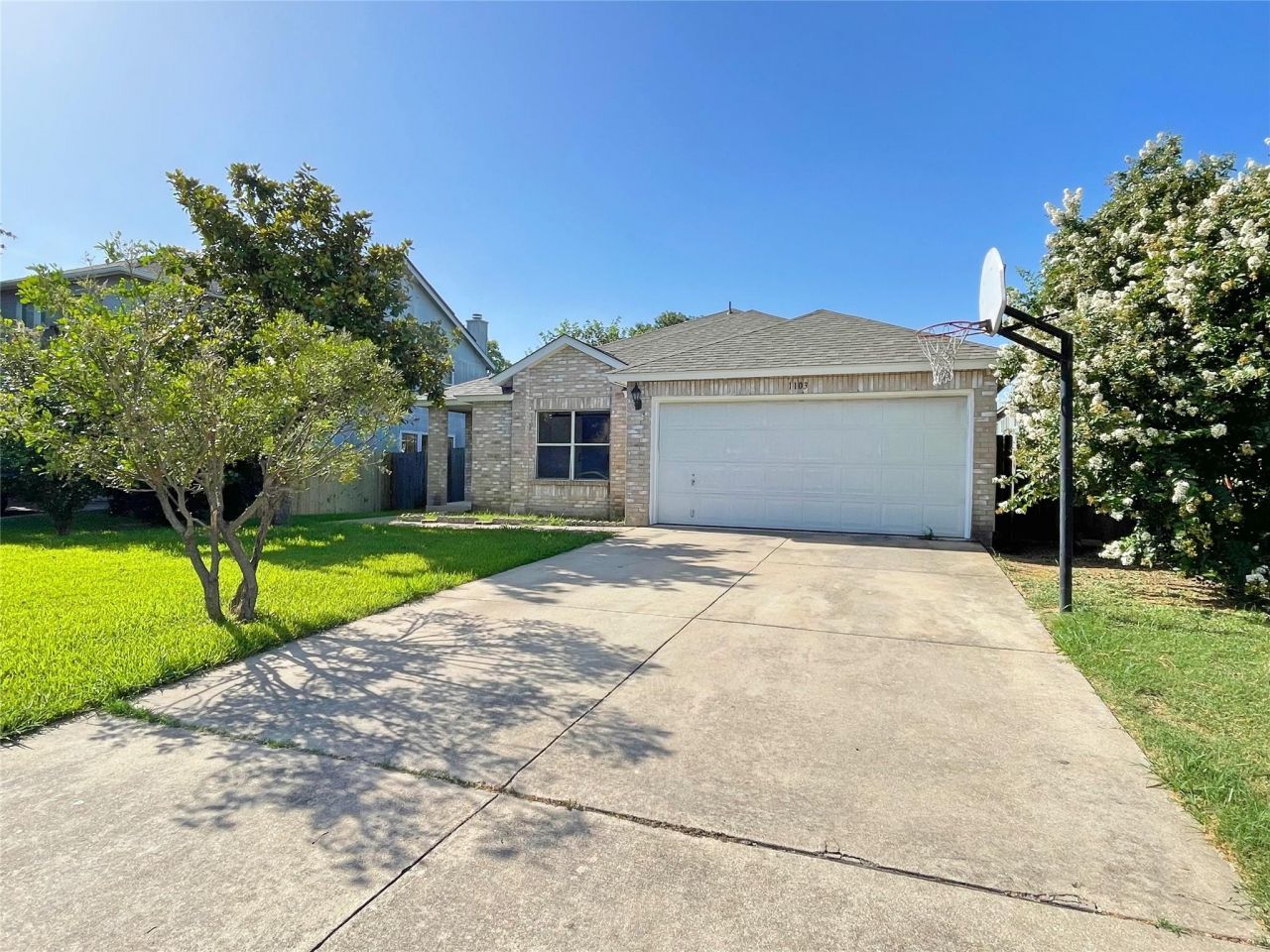 Discover serenity and modern comfort in this beautiful 3-bedroom, 2-bathroom home nestled in Round Rock, Texas. The living room seamlessly flows into the well-appointed kitchen and dining area, providing a spacious and cohesive living space ideal for daily living and gatherings. Enjoy the warmth and elegance of the kitchen with its warm chocolate cabinets and expansive countertops, perfect for meal preparation and hosting guests. Unwind in luxury in the primary bathroom, featuring a stunning walk-in shower that promises relaxation and sophistication. Outside, the fenced backyard provides a private oasis with shade from surrounding trees, ideal for both peaceful moments and outdoor activities. Whether you're hosting gatherings, playing with pets, or simply enjoying the fresh air, this backyard sanctuary offers comfort and tranquility. Experience the perfect blend of style, functionality, and relaxation in this Round Rock gem. Don't miss out on making this your new home sweet home!
