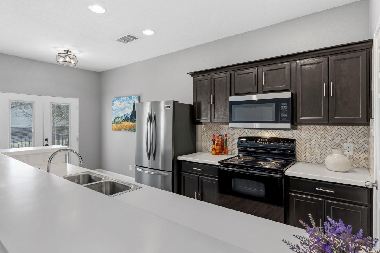 Welcome home to this beautifully updated 2 bedroom, 2.5 bath townhome, a generous 1515 square feet, tucked right in the heart of South Austin. Ideal property as a primary residence, second home or investment property with strong rental potential. New AC system 8/25, new carpeting 3/26, fresh interior paint, ceramic tile floors downstairs, updated kitchen, and designer tiled bathrooms give this space a clean, contemporary feel with effortless charm. The inviting open-concept living area is perfect for entertaining or relaxing, filled with natural light and seamlessly connected to a bright, updated kitchen with a walk-in pantry and refrigerator that conveys. New French doors lead to your private, fenced backyard for pets play yard ? or simply enjoying the peaceful green space beyond. Walk upstairs into another living area, guest bedroom and full bathroom and laundry room with washer and dryer. The primary suite offers a peaceful retreat with an attached open side room ? a versatile flex space perfect for a study, reading nook or nursery. You'll love the attached one-car garage and driveway parking! The HOA provides lawn care. Additional guest parking just around the corner or by the pool. Ideally located within walking distance to Canterbury Trails Park and just minutes from Mary Moore Searight Metropolitan Park, offering miles of scenic trails and outdoor recreation. Spend evenings at nearby favorites like Moontower Saloon, Bouldin Acres, South Austin Beer Garden and enjoy quick access to H-E-B for everyday essentials. Just 30 minutes to Austin-Bergstrom International Airport, making travel a breeze. This is low-maintenance living with high South Austin energy ? laid-back, connected, and close to everything that makes this side of town so iconic.