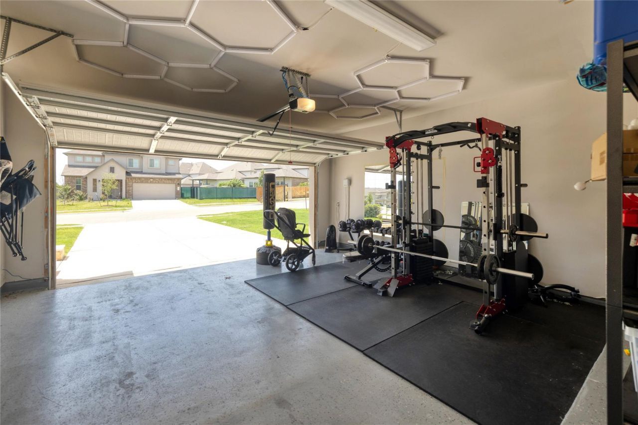Located in the desirable Larkspur community, this upgraded five-bedroom home blends functionality, comfort, and convenience.This spacious two-story layout features 5 bedrooms and 4 full baths, including two bedrooms on the main level with the primary suite downstairs?ideal for guests or multigenerational living. The open-concept kitchen, dining, and living areas provide seamless flow for everyday living and entertaining.Upgrades include enhanced interior lighting fixtures, Govee permanent exterior lighting, epoxy-coated garage floors with modern hex lighting, water softener and reverse osmosis system, custom cabinetry in the primary closet and laundry room, and enhanced front yard landscaping. Outdoor living features a 24x16 gazebo and twin-size swing.Upstairs offers three additional bedrooms, two full baths, and a spacious loft providing flexible space for a game room, media area, or second living space.Zoned to Leander ISD with convenient access to 183 Toll and Ronald Reagan Blvd (approx. 3 minutes). H-E-B Plus is within 5 minutes, with upcoming Costco and Target nearby. Community amenities within walking distance include two pools, basketball court, fitness center, and neighborhood events