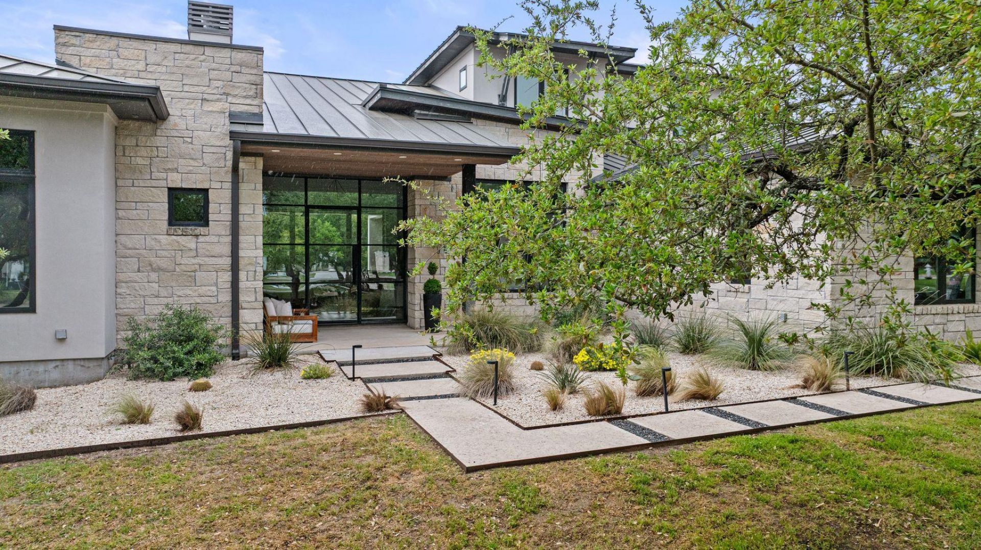 Set on a pristine 1 acre lot in the coveted Meridian Estates, this custom-built modern Texas ranch blends privacy, luxury, and community. Originally designed and built by the builder for his own family, no detail was overlooked and no expense spared. Expansive windows, tall ceilings & steel doors flood the interiors with natural light and blur the lines between indoor and outdoor living. Hardwood floors run throughout the home, anchoring its clean, contemporary aesthetic. The home features three indoor living areas, five bedrooms, and four and a half bathrooms, including a dedicated pool bath for seamless outdoor access. The main living room features a gas fireplace and built-in bookshelves, flowing effortlessly into a chefs kitchen equipped with premium Thermador appliances, an industrialgrade vent hood, and two additional prep spaces: a wine bar with wine fridge and a generous walk-in pantry/workspace. Practicality meets polish with a large mudroom, laundry room, and oversized, split three-car garage. Upstairs, you'll find two bedrooms (one en-suite) and a cozy bonus living area. Step outside to enjoy over 1,100 square feet of covered patio, complete with a fireplace, outdoor kitchen, and bar ideal for entertaining yearround. The family-friendly pool and negative edge spa, finished in quartz and surrounded by Versailles-pattern travertine and synthetic turf, create a low-maintenance outdoor oasis. Architectural steel accents and drought-tolerant landscaping including olive trees, lavender, and citrus enhance the curb appeal and sustainability of the property. Built in 2017, the home includes high-end automation, Vista Pro landscape lighting, dual-pane Andersen 100 Series windows, and spray foam attic insulation. Ideally located just 15 minutes from downtown Austin and the Hill Country, and zoned to top-rated Baldwin Elementary, this home offers access to Bear Creek Lake and miles of scenic hike-andbike trails.