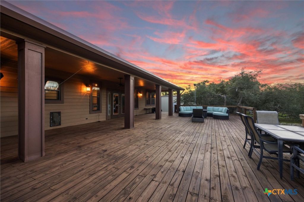 Beautiful Custom Home nestled around the trees in the Texas Hill Country. Imagine enjoying the sights and sounds of nature every day and feeling restful every night as you enjoy the sunsets from your oversized front and back decks. This 3 bedroom 2 bath home welcomes you into its large open living space as soon as you walk in the front door. It will convince you to stay and sit awhile, quietly tucked away on the back porch. This property is fully fenced, landscaped, and comes with a 30 X 40 workshop/garage. This oversized lot in Rancho Del Lago, has been thoughtfully designed and attention given to every detail for your comfort. Schedule your showing today and let it steal your heart in person.