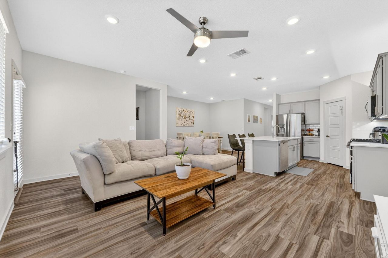 This inviting 4-bedroom, 2-bath home is designed to make everyday living easy and enjoyable. The open-concept layout allows you to cook, dine, and relax without feeling disconnected?perfect for entertaining guests or keeping an eye on everything happening at home.The kitchen is a standout, offering quartz countertops, stainless steel appliances, a large island for gathering or meal prep, and a walk-in pantry that keeps everything organized and within reach. Whether youre hosting friends or managing busy mornings, this space works for you.The private primary suite provides a comfortable retreat at the end of the day, complete with a spacious walk-in closet. Three additional bedrooms give you the flexibility to create guest rooms, a home office, or play space as your needs change.Step outside to a covered patio thats ready for relaxing evenings or weekend barbecues, while the fully sodded yard and irrigation system save you time on maintenance. Smart home features?including Alexa voice control, video doorbell, smart lock, lighting, and thermostat?add convenience, security, and energy efficiency to your daily routine.