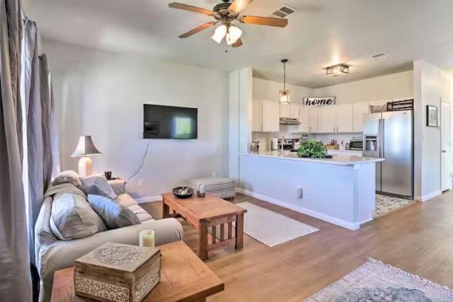 Located just minutes from Georgetowns historic town square, this updated home offers a functional layout, abundant natural light, and a private greenbelt backdrop with no rear neighbors. The main level features an open kitchen, dining, and living area designed for both everyday living and entertaining, complete with updated flooring, modern lighting, neutral finishes, stainless steel appliances, generous counter space, and ample cabinetry, all flowing seamlessly to the backyard patio for easy indoor-outdoor living. The primary bedroom and full bath are conveniently located on the main floor, while three additional bedrooms and a second full bath are upstairs. With abundant storage, a covered front porch, covered parking, and low-maintenance landscaping, this well-maintained property is not only ideally positioned near shopping, dining, and community events, but also operates as a functioning Airbnb?offering immediate income potential or flexibility for personal use.