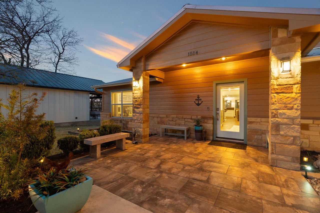 Location is EVERYTHING! Imagine relaxed waterfront living on Lake LBJ and just two homes away from open water, this inviting waterfront retreat offers the perfect blend of relaxation and recreation. Seconds from Boat Town ? but without the noise, the 3-bedroom, 31/2-bath home features a bright open-concept for easy living and effortless entertaining, with spacious gathering areas that flow seamlessly to the outdoors. Surrounded by mature shade trees, the property enjoys gorgeous Hill Country sunsets while keeping you cool and comfortable throughout the evening. A wrap-around deck and multiple outdoor entertaining spaces create ideal spots for dining, hosting, or simply unwinding by the water. The outdoor kitchen and lakeside firepit make this home ready for year-round gatherings with family and friends. The landscaped yard is fully fenced and leads down to a private boat dock complete with an electric lift and two personal watercraft slips ? perfect for enjoying everything Lake LBJ has to offer within moments of open water access. Additional features include a workshop for hobbies or storage, abundant exterior living areas, and short-term rentals are allowed, making this property equally suited as a full-time residence, weekend getaway, or income-producing investment. Whether youre boating, entertaining, or watching the sunset beneath a canopy of trees, this property captures the very best of lake living.