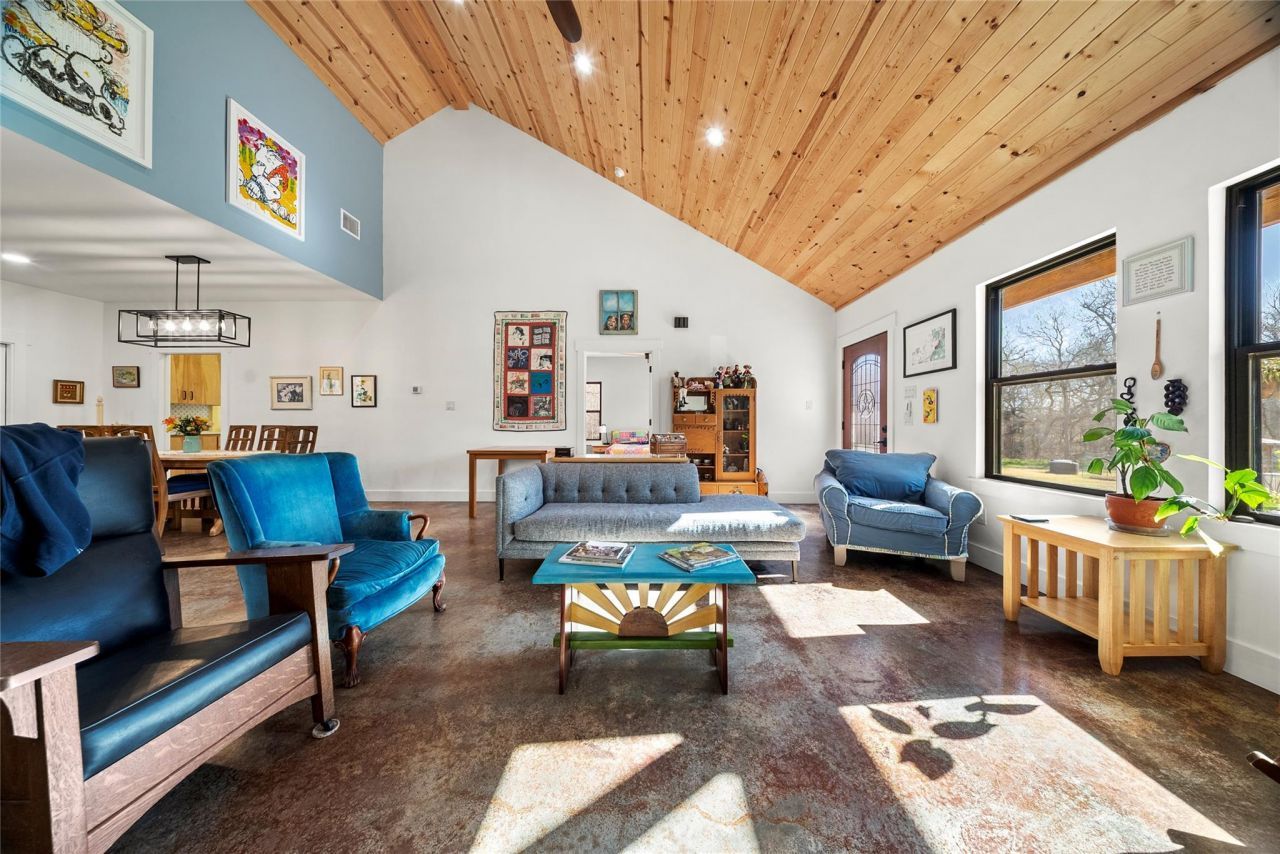 Set on just over 11 beautiful acres in Elgin, 153 County Road 491 offers the kind of space and freedom thats getting harder to find. As you arrive, youre welcomed by a front porch made for rocking chairs and peaceful sunrises with your morning coffee. Step inside to an open layout with a seamless connection between the kitchen and living area, perfect for everyday living and entertaining. The kitchen features stainless steel appliances, a double oven, abundant drawers and cabinetry, and a spacious center island with seating. The living room is anchored by a cozy fireplace, while a spiral staircase leads to a versatile upstairs bonus space - perfectly suited for a second living area, home theater, gym, or playroom or 4th bedroom, but especially ideal as a private work-from-home office with its own exterior entrance, allowing clients or guests to come and go without ever entering the main living areas. The primary suite feels like its own retreat, complete with a soaking tub nestled inside an oversized walk-in shower and convenient access to the laundry room. The mudroom adds everyday practicality with a closet, sink, laundry connections, and extra cabinetry to keep life organized after a day outdoors. Step outside to the enclosed back patio with ceiling fans, the perfect place to unwind year-round while overlooking your land. Beyond the patio, the lifestyle truly shines with your very own private pickleball court, ready for friendly matches, weekend tournaments, or evening games under the Texas sky. Across the charming bridgeway, or accessible by stairs, sits a separate 1 bedroom, 1 bath guest apartment currently used as a short-term rental, offering incredible potential for guests, multigenerational living, or added income. Enjoy the peace of country living while being less than 10 miles from Downtown Elgin and within easy reach of Austin. Wide open space, recreation, income potential, and thoughtful design all come together in this one-of-a-kind property.