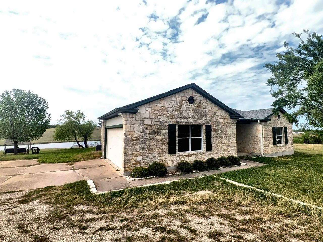 Situated on a generous 3.856-acre flag lot, this property offers a unique opportunity to enjoy privacy, space, and natural beauty, highlighted by a 10-acre private lake that ensures stunning views and exclusive leisure activities. Home to a practical barn that not only serves functional needs but also stands as a picturesque feature overlooking the tranquil lake and view of lush land, offering a canvas of peace and scenic beauty. At the core of this serene setting is a 1,570 sq. ft. home with a touch of country charm. Equipped with a 2-car side entry garage & expansive covered back patio, the residence offers 2 bedrooms, 2 bathrooms, 2 dining areas, presenting a warm & inviting space for both relaxation and entertainment. The layout is thoughtfully designed for versatility; the main dining area can easily be transformed into a third bedroom or provide flexibility for additional space for a home office. The property's extensive outdoor space, complemented by a private lake, opens up endless possibilities for activities & tranquil moments. Its an ideal setting for those who cherish the outdoors & seek a quiet haven away from urban hustle. Whether it's morning coffee on back porch or simply enjoying the expansive views of the lake, this property offers a lifestyle that harmoniously blends the simplicity of country living with the joy of having nature at your doorstep. This property enriches the living experience with its aesthetic appeal and functionality. Seize the chance to make this balanced and beautiful home yours, and step into a lifestyle where natural beauty & practical living coexist in your private retreat. Just a short drive to major employers like Samsung & Tesla. The proximity to major highways ensures easy commutes & quick trips to bustling city centers, while a variety of restaurants & shopping options nearby cater to all your dining & retail needs.