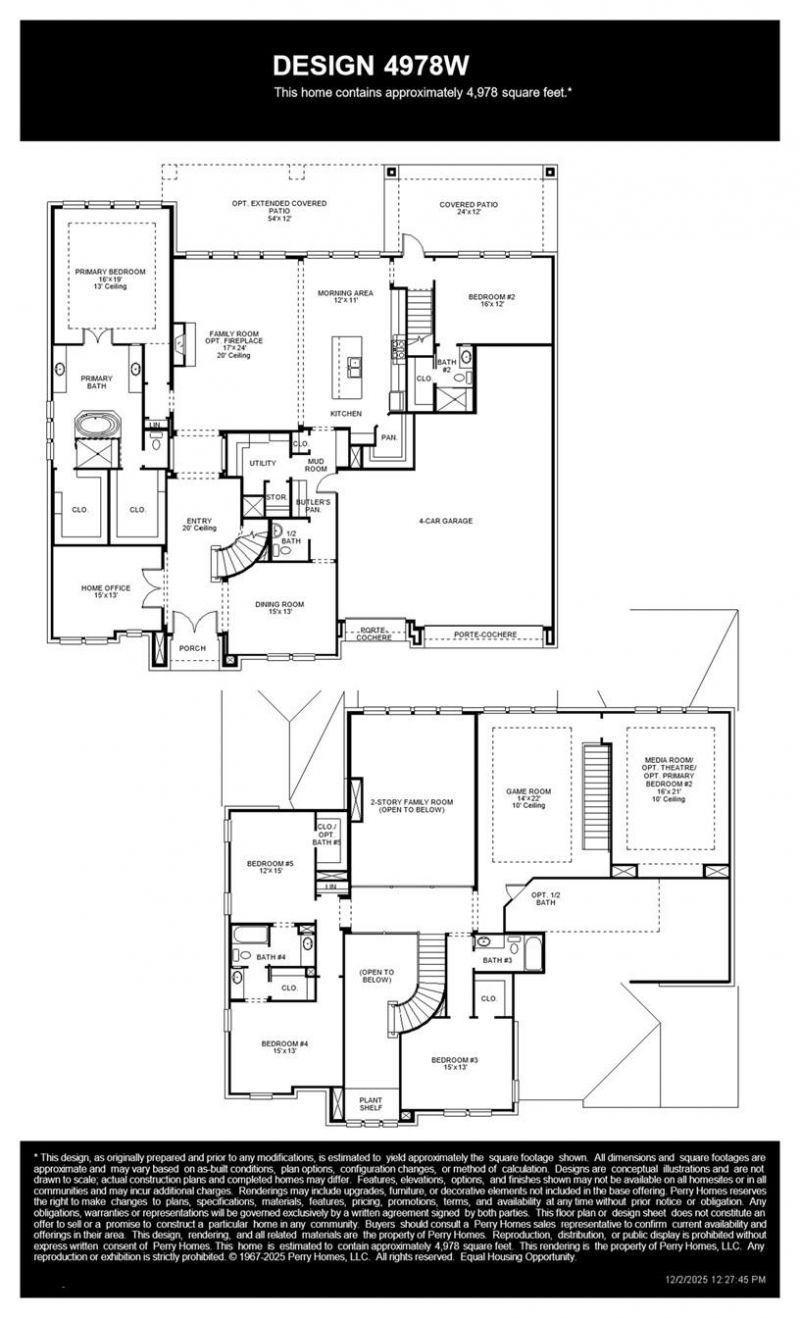 Step off the front porch into a grand entryway boasting a 20-foot ceiling and curved staircase. French doors open into the home office. Dining room is adjacent from the office. Past the stairs you enter the open family room with a wall of windows, a wood mantel fireplace, and extended ceilings. The morning area connects the living area and the kitchen. An island with built-in seating, a commercial style 6-burner gas range top, corner walk-in pantry and butler's pantry provide additional storage. The primary bedroom hosts a wall of windows. French doors open into the primary bathroom which features dual vanities, a freestanding tub, a separate glass enclosed shower, and two walk-in closets. A private guest suite is off of the morning area and features a walk-in closet and private bathroom. Upstairs you are greeted by a game room which overlooks the main floor and a theatre room with three large windows. Secondary bedrooms which boast walk-in closets and a Hollywood bathroom as well as an additional guest suite complete the second floor. Extended covered backyard patio. The mud room, utility room, and additional storage area off of the porte-cochere four-car garage.