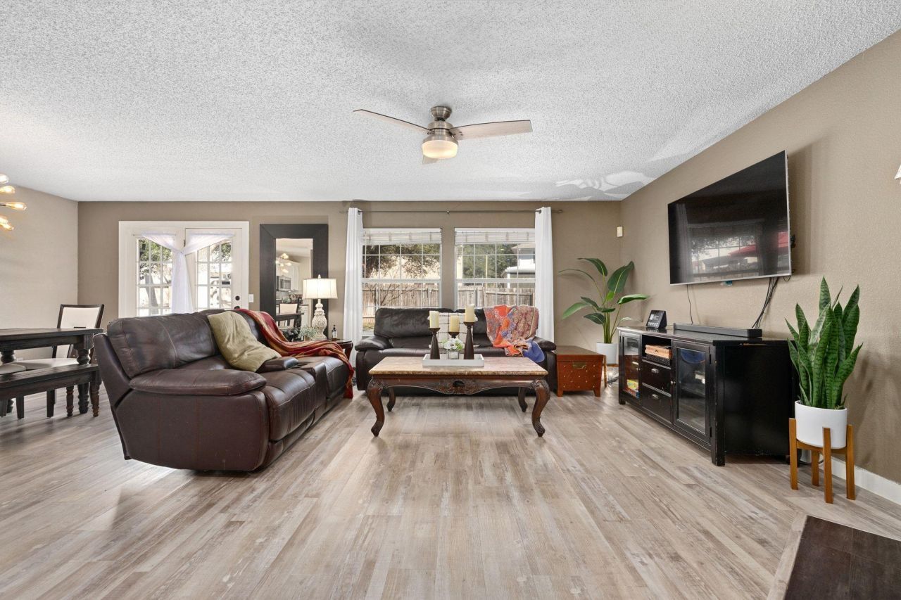This beautifully updated, modern home built by custom builder Clark Wilson offers a bright, open floor plan in a charming enclave of homes crafted by a select group of custom builders. Mature oak trees line the neighborhood, giving it a peaceful, established feel not your typical cookie-cutter community.The home features 3 bedrooms, 2 full baths, and a spacious living area highlighted by a birch wood gas-log fireplace. Step outside to relax on the custom flagstone patio, perfectly shaded by a large tree. The expansive backyard is pool-ready and even includes a peach tree.The heart of the home shines with sleek, modern updates, including granite countertops, subway tile backsplash, breakfast bar and stainless-steel appliances. Bathrooms feature updated granite counters, bathroom fixtures, a jetted tub, and a walk-in shower. Additional upgrades include custom interior and exterior paint, a painted garage door, full sprinkler system, gutters and a 30-year architectural 3-dimensional roof. This home has had almost $60,000 in updates since purchase.Enjoy durability and style of the 50-year commercial-grade luxury vinyl plank flooring in the living areas and wood-style laminate flooring in the bedrooms.Located near the new mixed-use district under construction at Toll 45 and Greenlawn, offering future Class A office space, retail, and dining similar to the Domain. Close to local attractions including Dell Diamond home of the Round Rock Express, Kalahari Water Park & Resort and Austins Park Amusement Center. Enjoy the neighborhood amenities; large community pool, playground and basketball sport court.Dont miss this opportunity to own a beautifully updated home in a wonderful community with fantastic amenities and a prime location. Seller is a licensed Texas Realtor. Seller needs 45 day lease back.