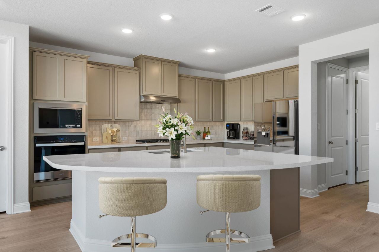 New Coventry Home! 1717 Sauterne Drive offers the most natural light and wide-open family room concept of any of the Coventry Homes plan designs. Located in Carneros Ranch, one of the only communities in Leander without a PID or MUD tax, this showstopper shines in spaciousness and beauty! The true heart of this home shines as you enter the front door. You will find gigantic ceilings, walls of windows, upgraded RevWood floors, iron balusters, stunning cabinetry, dazzling quartz tops, a gourmet kitchen, a large kitchen island, and 8-foot doors that add luxury to every detail. Comfort and convenience are priorities with an added mudset primary shower with seat, an oversized shower in the downstairs private guest suite, pre-plumbing for a future water softener, as well as pre-wiring for a future car charger. You will not be able to miss the enormous 17-foot-tall covered patio that is equipped with a gas connection and plenty of space for relaxing. This Winters home is finished to impress, so schedule your tour before someone else does! ** Ask us about our low interest rates & special financing! Visit Onsite for details ? subject to change without notice. **