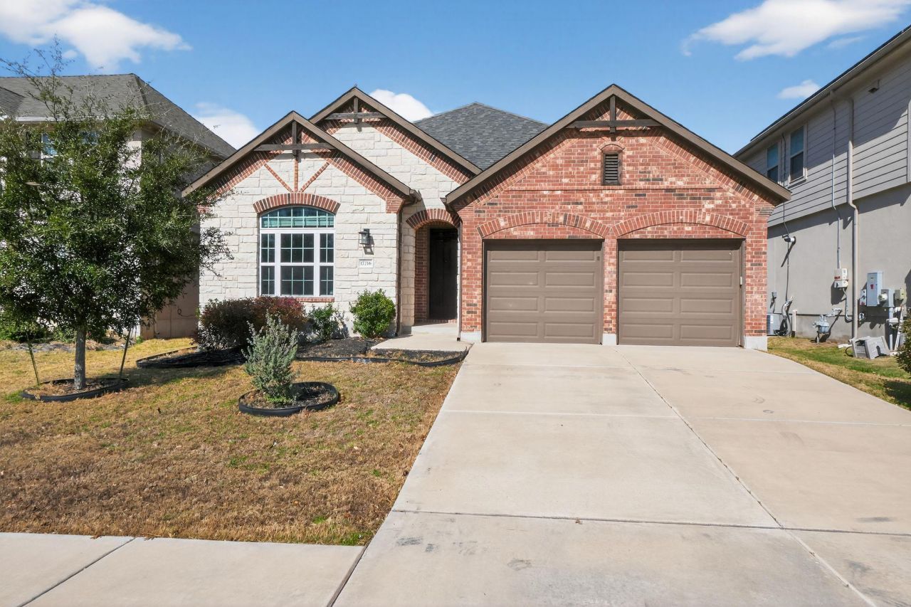 Beautifully designed in a luxury French Country style, this meticulously maintained home sits in the sought-after master-planned community of Carmel West. Soaring ceilings, natural stone accents, and walls of windows fill the home with light and character. Wood-look tile flows through the main living areas, leading to a chefs kitchen with quartz countertops, upgraded cabinetry, stainless steel energy-efficient appliances, and a large island that opens to the living room. Bathrooms feature raised vanities with quartz counters, while the primary suite offers an oversized soaking tub and walk-in shower. Step outside to an extended covered patio with an outdoor gas fireplace and spacious backyard. Located just 17 miles north of Downtown Austin with easy access to I-35, TX-45, and TX-130, plus nearby shopping, dining, schools, and healthcare. Pets ok; limit two; 50lbs or less. *** Resident must choose between two resident benefit packages at time of application.