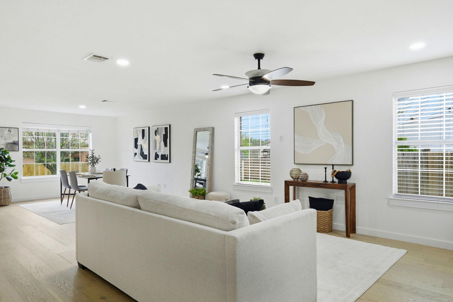 Located in one of Round Rocks most desirable communities, this exceptional home truly checks all the boxes - an open and airy floor plan, oversized cul-de-sac lot, and a highly convenient location.The main living area anchors the home with warmth and seamless flow, creating a space that feels both impressive and inviting.At the heart of the home, the kitchen has been thoughtfully updated with modern finishes, premium countertops, and top-of-the-line appliances - perfect for both everyday living and entertaining.The primary suite, located on the second floor, offers a private retreat highlighted by a stunning wall of windows that fills the space with natural light. It is complemented by a beautifully remodeled en-suite bathroom with a walk-in shower and two walk-in closets.Upstairs, three additional bedrooms offer plenty of space, each with generously sized closets and ceiling fans for added comfort.All bathrooms throughout the home have been recently updated, showcasing modern fixtures and elegant tile work.Step outside to a shaded backyard patio framed by mature trees - an ideal setting for slow mornings with coffee or relaxed evenings with friends. Two versatile outdoor sheds offer additional storage or the opportunity to create a playhouse or creative space.The garage has been converted into a fully air-conditioned bonus area - perfect for a home office, playroom, homeschool space, media room, gym, yoga studio, hobby room, or additional storage.Additional upgrades include a whole-home water filtration system, water softener, and an under-sink reverse osmosis system.Zoned to Pflugerville ISD schools and located near major tech employers, shopping, dining, and commuter routes, this home offers comfort, style, and accessibility.