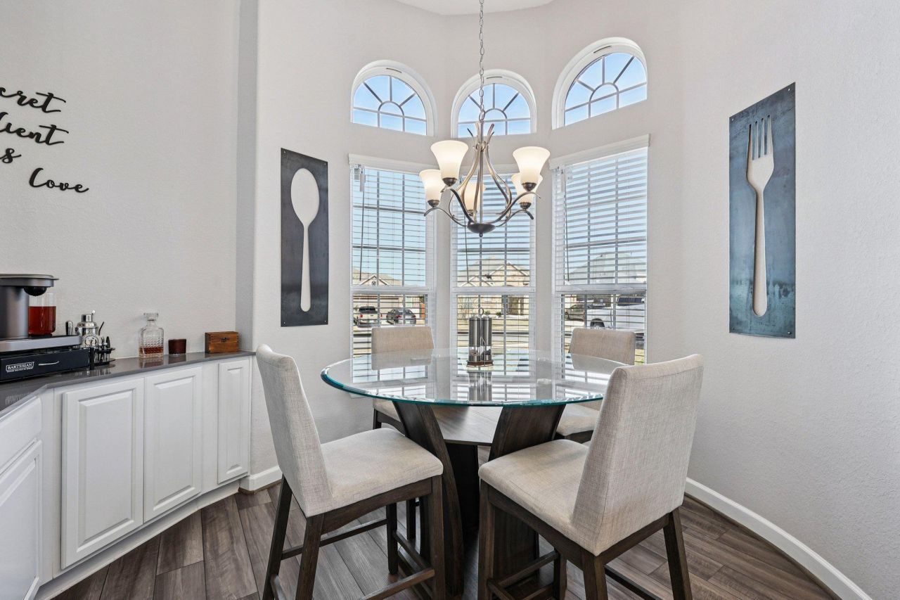Built in 2022, this beautifully designed Sunfield home offers nearly 3,800 square feet of refined living with a layout that balances elegance and functionality. Soaring ceilings, abundant natural light, and a seamless open design create an inviting atmosphere from the moment you step inside. The main level includes a dedicated home office, ideal for remote work or focused study, along with a private primary suite designed as a true retreat. At the center of the home, the expansive kitchen features an oversized island that anchors the space and flows effortlessly into the living and 2 dining areas, creating an elevated yet welcoming setting for gatherings both large and small. Upstairs, spacious secondary bedrooms and versatile living areas offer flexibility for a media room, game room, or guest retreat. Outdoors, a covered patio and pergola complete with an outdoor grill, overlook the fully fenced backyard, providing the perfect backdrop for relaxing evenings and weekend entertaining. Located just moments from Sunfields resort-style pool, parks, and trail system, this home delivers modern construction, intentional design, and everyday luxury in one exceptional opportunity.