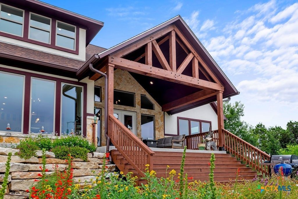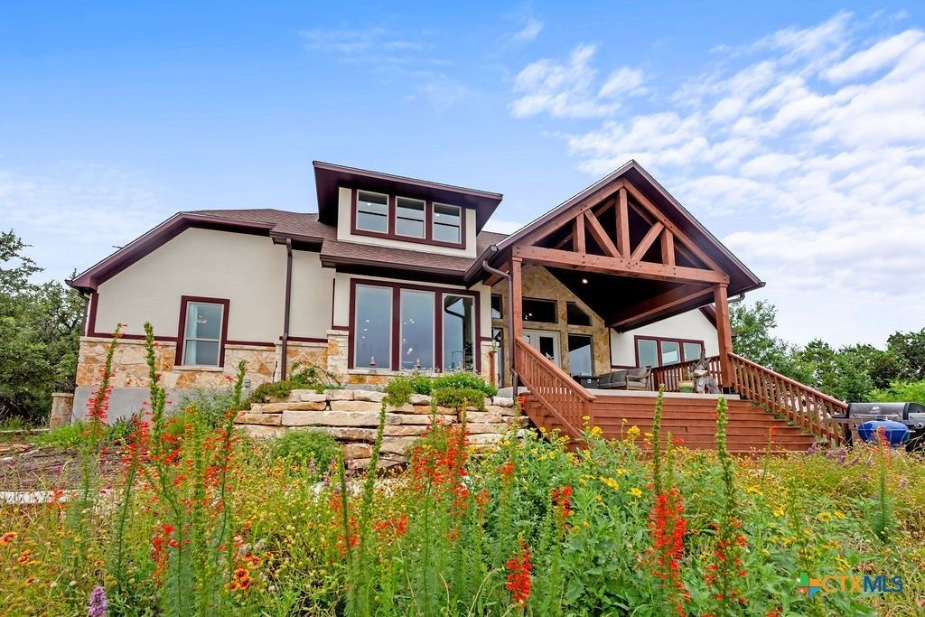 Hill Top Views! Tucked privately on the pinnacle of a gently curving landscape in the heart of the Texas Hill Country, this sprawling property features a 2,974 sqft home nestled on a 2.99-acre lot with the best views in all of Fischer, Texas. Your living room has views that span miles, from the soaring ceilings to the wall of windows. You have a floor-to-ceiling fireplace with a raised hearth. Your kitchen features an island with a limestone base, subway tile backsplash, built-in ovens + microwave, built-in wine rack, farmhouse basin sink, smooth cooktop, and walk-in pantry. Located at the front of the home is a powder room perfect for guests and a dedicated office or mixed-use space. The large primary suite will not disappoint, with its sprawling views through extra-large windows and ample storage spread across two closets, including a huge walk-in closet with custom built-ins. The ensuite features a soaking tub framed by a window with more hill country views, a walk-in shower, a water closet with linen storage, and a double vanity framed by multiple built-ins. Your other bedrooms are generously sized, with a secondary bath conveniently located between them, as a bonus area upstairs. When it's time to relax, venture out into your expansive outdoor living space under the covered patio. Nature enthusiast? You'll love all of the butterflies and hummingbirds. Escape to the Texas Hill Country to play in the waters of Canyon Lake. Enjoy jet skiing on the lake, hiking the various trails near the home, browsing the boutique shops in town, and being close to the main roads. Whole-house water filtration system. 400 amp Electric service to allow for a guest house. Two thousand twenty-four taxes were $6,467.66. (Appraisal districts' numbers are overstated) Live Life In Luxury With Private, Breathtaking Sunsets From Home!