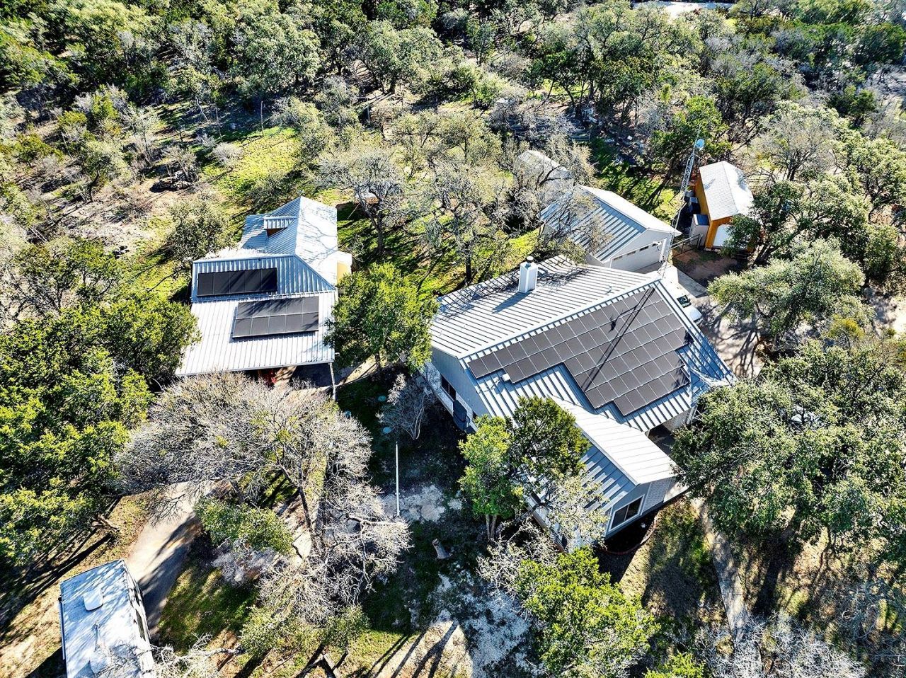 No HOA! Fully separate 1BR ADU perfect for revenue or extended family. This well-treed, 6.19 ac of Hill Country is located just outside the city limits of San Marcos, and yet still close to everything SM has to offer. The main home is a 2,085 sq. ft. single-story, featuring 4-beds, 2-baths. The main living area boasts high ceilings & a wood burning fireplace. Sizeable dining room can easily accommodate a 8+ person table & more. Kitchen features plenty 'o storage w/contemporary cabinets everywhere, quartz countertops & a coffee bar. Laundry room is conveniently located off the kitchen. The spacious primary bedroom includes an ensuite bathroom, featuring a tiled shower, dual vanities and his & hers walk-in closets. Updated LVP flooring and tile throughout. Remaining bedrooms generously sized! New windows in 2017. The large, 572 sq ft detached 2-car garage has room for a workshop or storage. It has power, is fully insulated, & includes an in-window ac. The separate ADU, built in 2021, is ADA compliant, w/an entry ramp from attached, custom built, LARGE high-end 2 truck(?) attached carport. The ADU's 800 sq ft interior has a full kitchen & washer/dryer hook ups. Living room & single bedroom are huge. ADA accessible shower. Three storage sheds are available, w/the largest at 427 sq ft & insulated. Standing seam metal roof on main home, detached garage, and ADU. Both primary & ADU come equipped w/fully-owned solar panels & large back-up batteries! Two RV power hookups, and one RV sewer connection. Multiple fenced-in areas behind the home for your animal needs. Chickens, goats, a cow or two? Walk the land & try not to get lost! Refrigerator and W&D in each home convey. Texas State, 5 miles away; HEB 6 mi; Hospital & Lowe's 9 mi; Target 10 mi; Outlet Malls 12 mi. Taxes, schools, proximities, sq ft & lot size to be confirmed by buyer. Its the perfect home base for those who value space, nature, & a quiet neighborhood vibe without sacrificing proximity to city amenities.