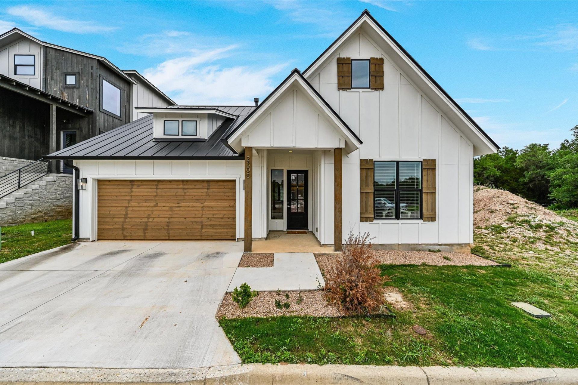 Discover this one-story home in a new community near Lake Travis. Inside, youll find vaulted ceilings, good natural light, and a clean, modern design. This 3-bedroom, 2-bathroom home features luxury vinyl plank flooring, a fireplace, and an open layout suited for everyday living and entertaining.The kitchen offers ample counter space and plenty of cabinetry for storage. A breakfast nook overlooks the patio and connects easily to the living area. The primary bedroom includes a walk-in closet and an en-suite bathroom with additional storage and a walk-in shower.Community amenities include a pool and access to a private boat dock on Lake Travis. The neighborhood is also located less than a mile from a private golf course.