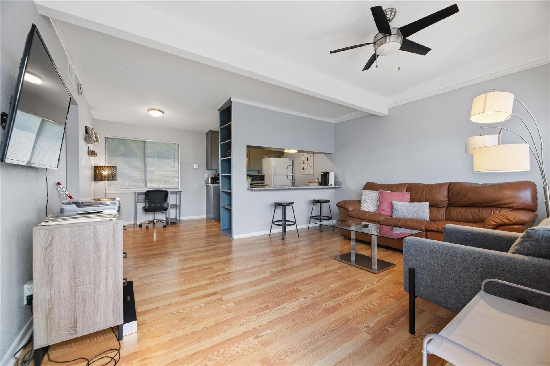 Updated 1-bedroom condo in a classic mid-century courtyard community, just minutes from UT Austin and Central Austin. Features wood-look flooring, fresh paint, and large windows throughout. The galley kitchen offers granite countertops, stainless appliances, and a breakfast bar. Spacious bedroom with full wall of windows and generous closet space. Updated bath with modern vanity and tiled tub/shower. Rare in-unit washer/dryer with built-in storage.Gated courtyard with patio area, off-street parking, and easy access to UT campus, Downtown Austin, local dining, and bus routes. Move-in ready. Ideal as a primary residence or low-maintenance investment property.