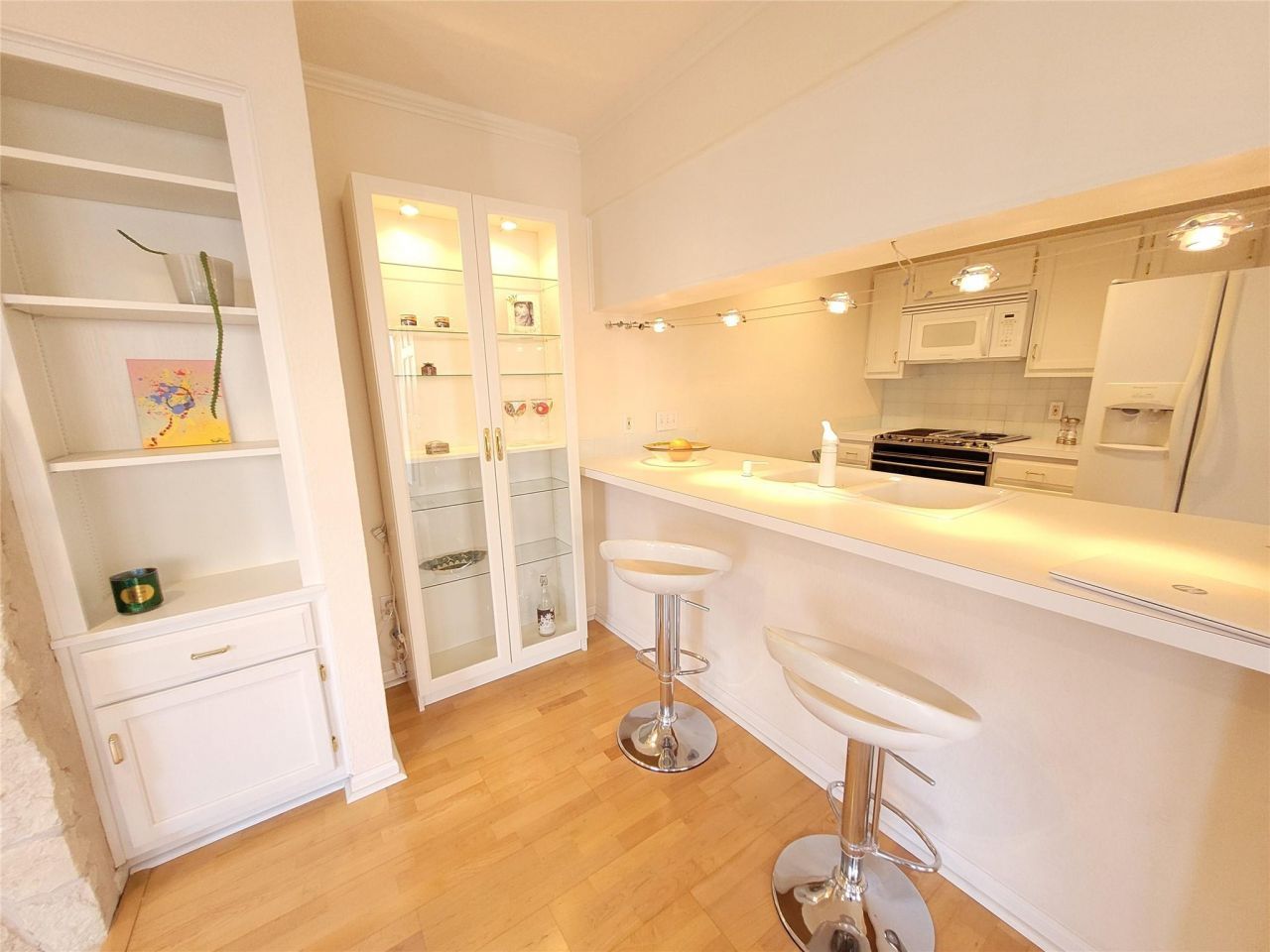 Quiet charm in the heart of Tarrytown. Located 1 mile from Lake Austin Waterfront restaurants and boat rentals. This meticulously maintained condo offers a warm inviting atmosphere with wood floors and wood burning fireplace, built-in bookcases. The Westerly facing windows provide natural light throughout. Your peaceful retreat has a small balcony facing the common landscaped areas. Kitchen features original Stainless Jenn Aire downdraft stove, microwave,refrigerator,dishwasher, garbage disposal. Gorgeous glass tile backsplash, white countertops and breakfast bar open to Livingroom. Remodeled modern bathroom includes new cabinets, new tile in tub with shower, tile floors and W/D closet. Exterior features include 1 covered reserved parking spot and storage closet. Some of the Lowest HOA fees of $216.17/ mo. include maintenance, landscaping, Ext. insurance, water, wastewater and trash pickup. Deed restrictions do not allow STR and have pet size and number restrictions.