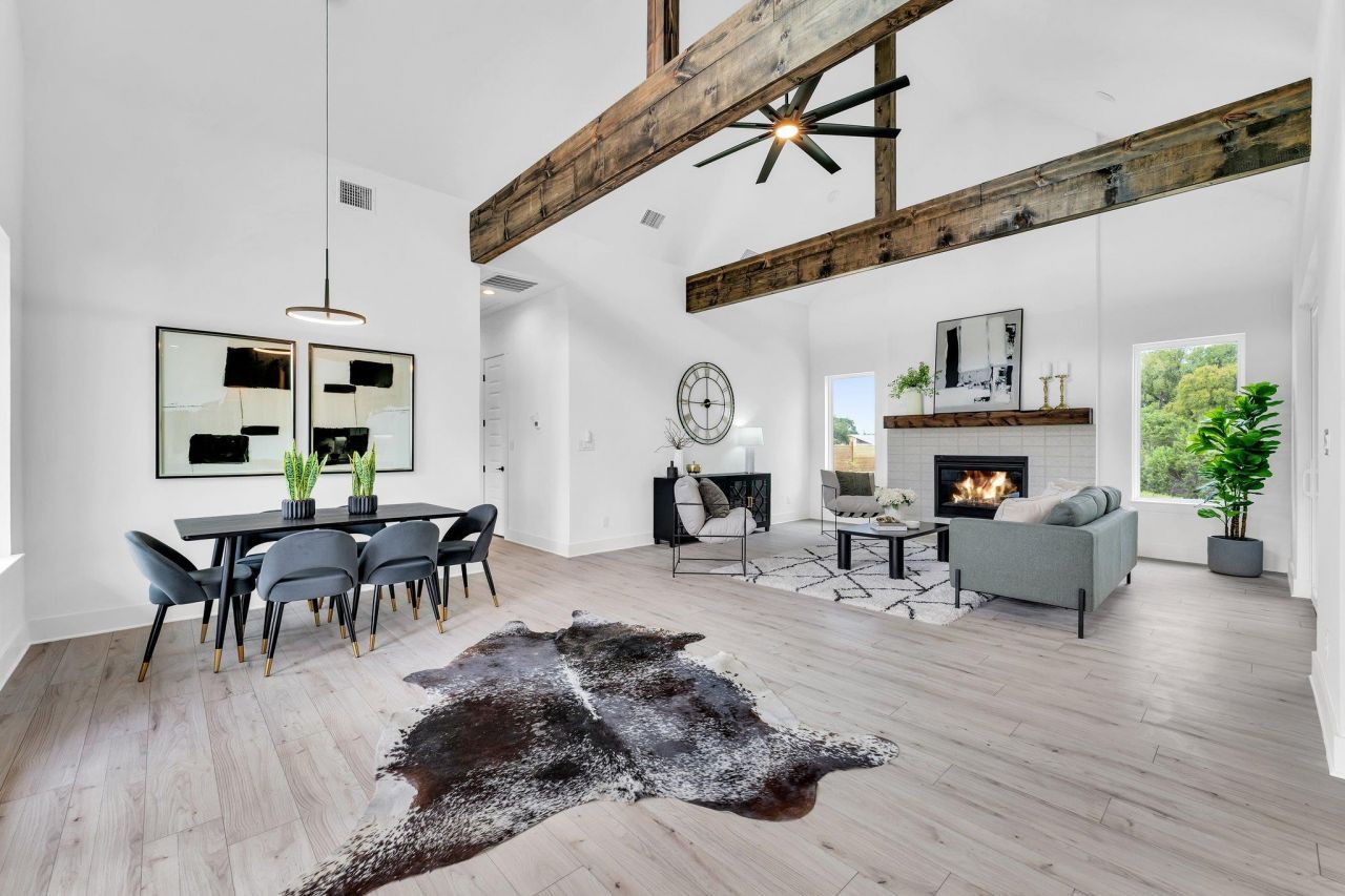 Experience modern Hill Country living on nearly 3 acres in Georgetown! This newly built 5-bedroom, 4-bath home offers a perfect mix of style, space, and function?surrounded by mature trees, a seasonal creek, and wide-open skies. With 2,535 sq ft, the open-concept design features tall ceilings with wood beams, large windows that let in tons of natural light, and a warm fireplace as the living room focal point.The kitchen is a true standout with quartz counters, floating shelves, a generous island, and a beautifully designed walk-in pantry. Dual sliding glass doors open to both front and back covered patios?ideal for relaxing or entertaining outdoors. The thoughtful floor plan includes private bedroom spaces, plenty of storage, and clean, high-end finishes throughout.Energy-efficient features include spray foam insulation, a tankless gas water heater, upgraded windows and doors, and smart thermostats. The oversized 2.5-car garage adds flexibility for extra storage, a gym, or a workshop.Located just 2 miles from the newest H-E-B, this home offers the best of both worlds?peaceful, country-like surroundings with city conveniences close by. Plus, enjoy a low 1.59% tax rate! This is a rare opportunity to own a beautifully crafted home on acreage in one of the fastest-growing areas of Central Texas.All information provided is deemed reliable but not guaranteed. Square footage is based on builder plans and may vary from actual measurements. Buyer to independently verify all details, including measurements, taxes, and schools.