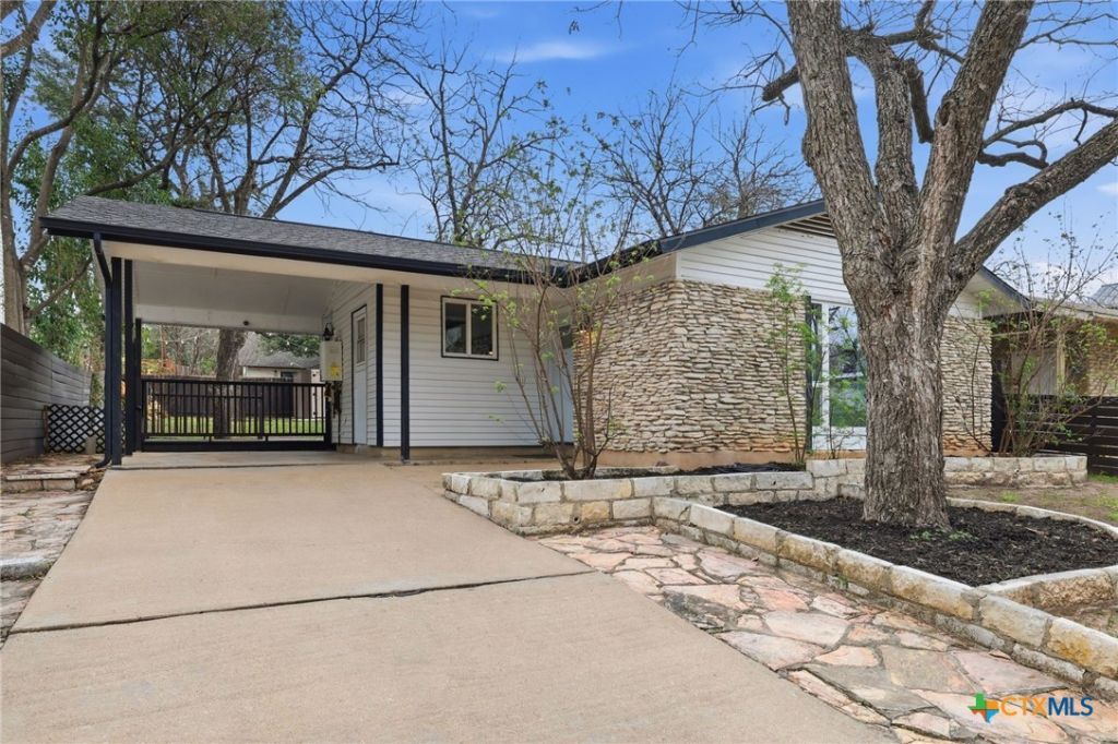 Updated single-story home in an established South Austin neighborhood offering 2 bedrooms, 2 bathrooms, and approximately 1,118 square feet of thoughtfully designed living space. Originally built in 1962, the home has been refreshed with modern finishes while maintaining its classic character. Inside, youll find wood flooring, fresh interior paint, and a bright, open living area with vaulted ceilings and abundant natural light. The updated kitchen features sleek cabinetry, stainless steel appliances, and generous counter space, creating a functional layout for everyday living and entertaining. Both bathrooms have been renovated with contemporary fixtures and clean, modern finishes. The primary bedroom offers comfortable space, a newly added walk-in closet, and direct access to the backyard through French doors, creating a seamless connection between indoor and outdoor living. Outdoor features include a covered carport, gated entry, and an expansive deck and patio area ideal for relaxing or hosting gatherings. The spacious yard provides room for gardening, pets, or outdoor activities, and a storage shed adds additional convenience. Located just minutes from St. Edwards University, major roadways, shopping, dining, and many of Austins popular destinations, this home offers convenient access to both everyday amenities and the vibrant downtown Austin area. A move-in ready opportunity in a well-established Austin location with updated interiors, enhanced functionality, and timeless appeal.