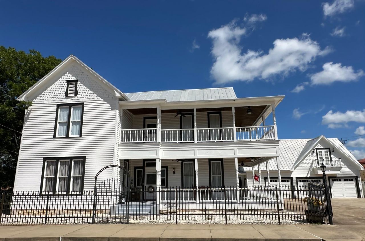 Beautifully restored 100+ year old home 1/2 block from the La Grange downtown square. Within view of the county courthouse and within earshot of the bells that sound at the noon hour. Walk to the quaint downtown restaurants, coffee joints, antique shopping, etc? Presently used as a residence but zoned commercial. Many original features: High ceilings, windows, transoms interior doors & knobs, front door that is acid sketched with the original doorbell. Den is open to the kitchen & dining by bar w/ original wood incl nails & cheesecloth. Eat in kitchen: updated cabinetry w/ granite & stainless appliances. Updates: new electrical, plumbing, 2 CA/H, metal roof, alarm system, etc... Cosmetic highlights: new molding,bead board ceilings, real wood floors down & engineered wood up. Exterior painted w/ Rhino shield paint- is a low maintenance exterior paint with 25-yr warranty. Baths up to date w/walk in showers, vanities, tile flooring. 2 1/2 car det garage w/ bar & mancave with full bath. Garage apartment is 625 sq ft extra, built 2015. Pool & pool house added 2013. Wrought iron boundary fence. This distinctive property lends itself to a Bed and Breakfast rental, weekend retreat or full-time residence.
