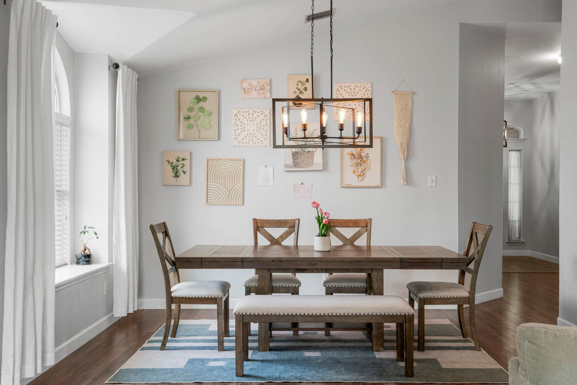 Ryan's Crossing is one of those neighborhoods that earns its reputation quietly. Walkable to Old Settlers Park, close to a community pool, and settled on streets that actually feel like streets rather than thoroughfares. This 1,849-square-foot single-story fits right in. Inside, the vaulted ceilings and open-concept layout give the main living area room to breathe. Tile and wood-look floors run through the living areas, keeping things easy to maintain, while carpet in the bedrooms adds warmth where you want it. The kitchen is well-equipped with stainless appliances and opens directly to the dining area, where a window brings in natural light and an accent wall adds a bit of character without trying too hard. A combined laundry room and pantry keeps things organized behind the scenes. The four-bedroom layout offers real flexibility, with the fourth working comfortably as a home office if you need it. The primary suite has an arch window that fills the room nicely, a walk-in closet with genuine storage space, and a double vanity bath. The guest bedroom has bead board accents that give it a little character. Out back, a large partially covered patio and a generous yard make for an easy place to spend time, whether that's a weekend gathering or a quiet evening. Buyer to verify all info.