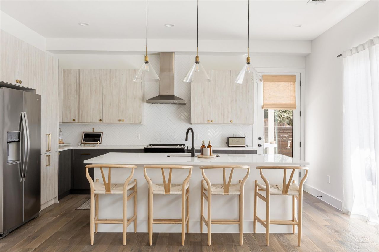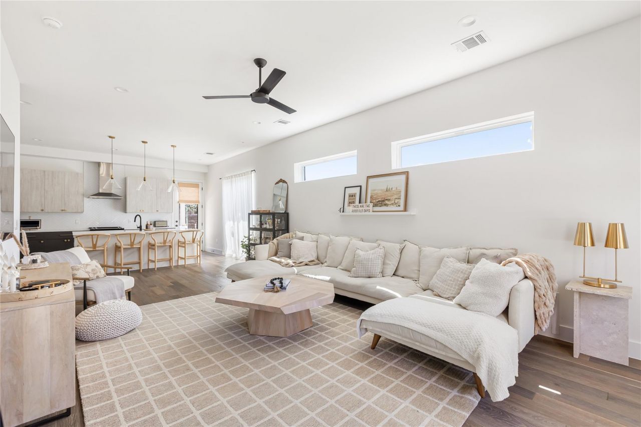 Thoughtfully designed living in one of Austins most sought after locations!This beautifully designed Carr Residential home is the perfect combination of style and functionality in one of Austins most desirable neighborhoods. The open concept first floor features soaring ceilings, abundant natural light and a seamless connection between the living and kitchen areas.Gorgeous kitchen is a true standout! Showcasing stainless steel appliances, spacious island with quartz counters, two-tone cabinetry and generous storage - ideal for both everyday living and entertaining. A conveniently located powder bath enhances the thoughtful main level layout.Outdoor living is equally inviting, with a covered back patio and dedicated backyard fire pit area, perfect for quiet evenings or casual gatherings. Fully fenced yard provides privacy and a peaceful retreat from the city.Upstairs, a versatile second living area opens to a private balcony, offering flexibility for a home office, reading nook, or bonus space.Ideally situated just minutes from Brodie Lane, this home provides easy access to South Austins favorite restaurants, bars, boutique shopping + coffee spots, along with quick connectivity to South MoPac and a short drive to Downtown Austin. Modern, energy efficient and well located, this home is a rare opportunity in a vibrant area!