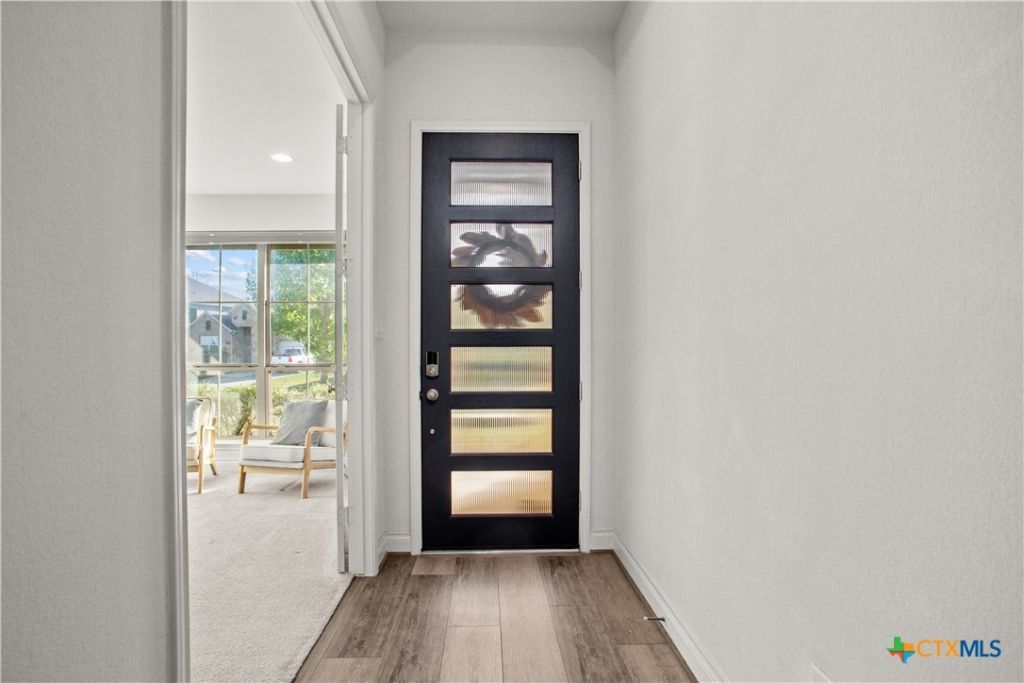 Smart. Efficient. Move-In Ready. Welcome to 369 Cold River Run in Kyle's sought-after 6 Creeks community. This upgraded Perry-built home offers 3 beds, 2 baths, and 1,984 sq ft of single-story living loaded with features you won't find in a standard new build. The kitchen features quartz countertops, a center island, stainless steel appliances, custom backsplash, under-cabinet lighting, and a pantry that lights up when you open the door. Eight-foot interior doors, luxury vinyl tile, and upgraded baseboards flow throughout. The primary suite offers a rainfall shower, quartz countertops, and downlights. What sets this home apart: a 7.2 kW rooftop solar array with Tesla Powerwall battery backup and a Tesla Wall Connector for EV charging. The entire home is wired with coax and ethernet, with a structured media cabinet, in-wall conduit for a cord-free setup, and pre-wired access points inside and on the patio. Control locks, lights, garage, sprinklers, thermostat, fans, and cameras ? all from your phone. Outside: covered patio with Bluetooth speaker lights, full soffit lighting, exterior uplights, and weatherproof outlets. The 2.5-car garage has an epoxy floor, bump-out with extra outlets, and a Wi-Fi-enabled door. Corner lot backing to a greenbelt with automatic sprinklers. Ecobee smart thermostat, top/down blinds throughout, and Wi-Fi ceiling fans in every room. Zoned to Hays CISD. This one is a rare find ? schedule your showing today!