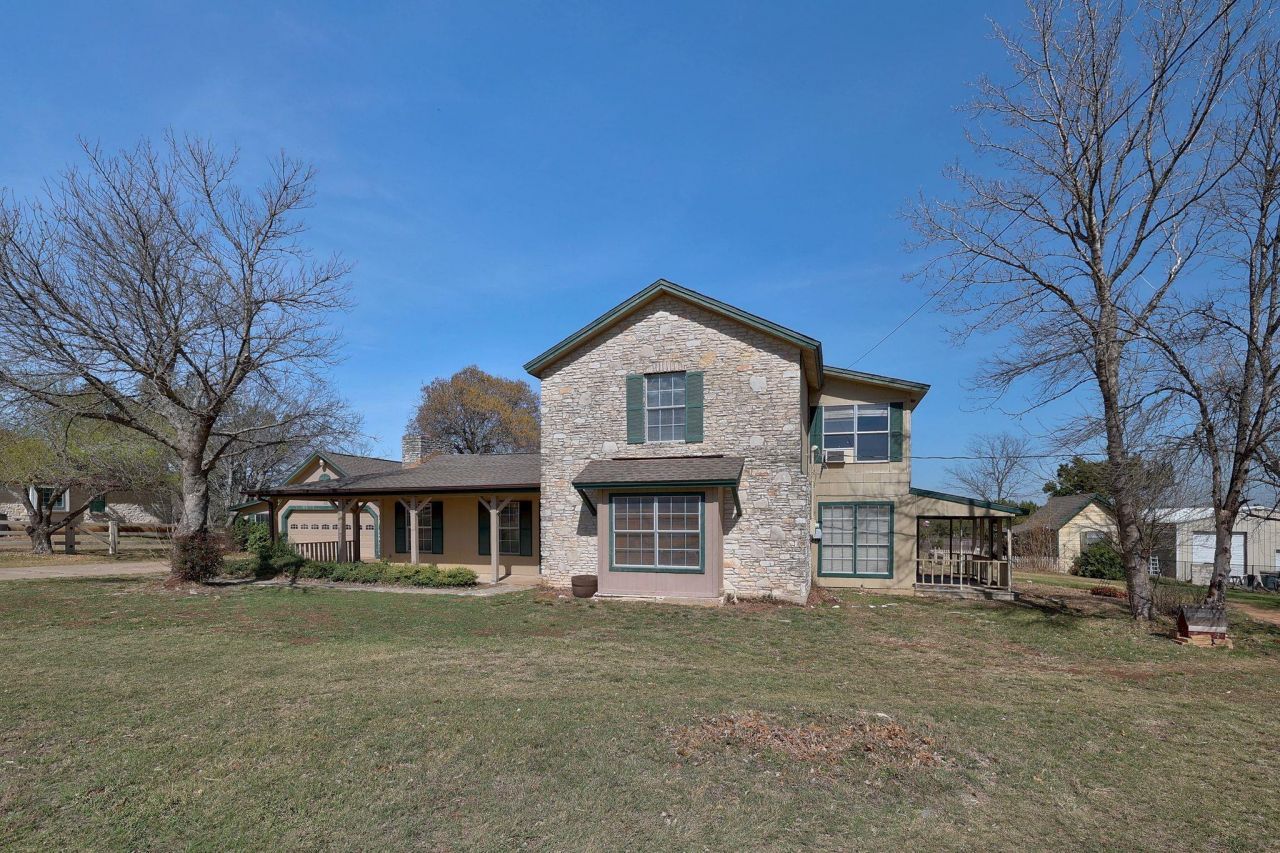 This charming home is approximately 2200 sf, 3/2.5 with a 2 car garage, shop, 2 cottages with electricity suitable for an office , pool house or game rooms, as well as a barn. Sits on 1.4 acres with beautiful trees. Brick fireplace with built in bookshelves, large kitchen, with breakfast porch. This property has so much to offer.