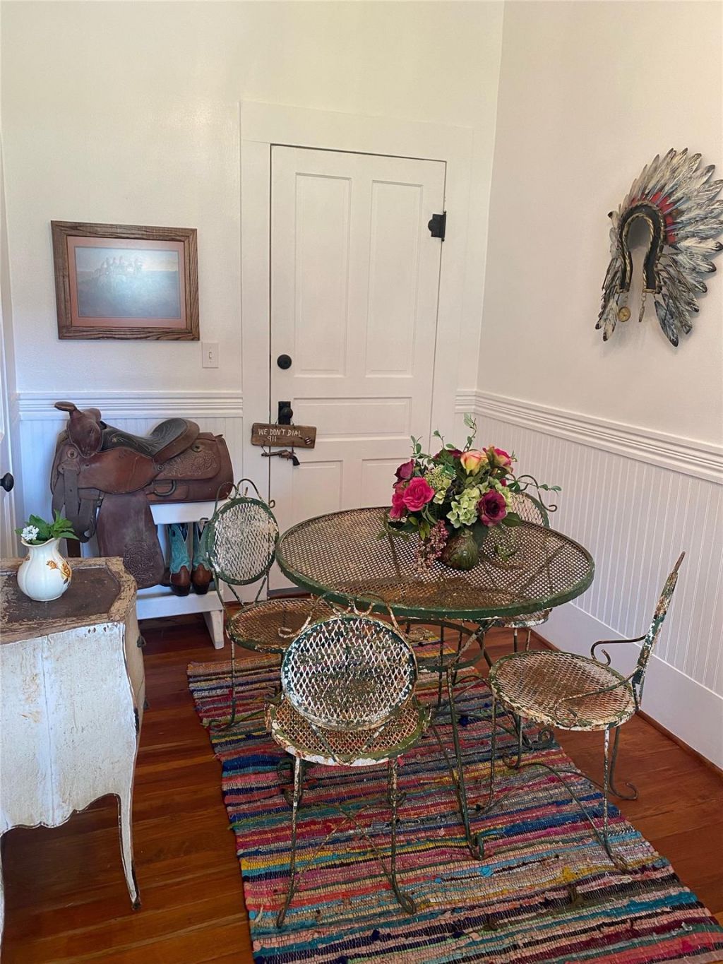 Welcome to this charming historic home, believed to have been built between 1890 and 1910. Step inside and you're greeted by tall ceilings, beadboard, shiplap, and original longleaf wood floors that bring timeless warmth and character. The kitchen still boasts its original cabinetry, a rare find that adds to the home's authenticity. This two-bedroom, two bathroom home features classic clawfoot tubs with shower additions, blending vintage charm with everyday functionality. The living room has a cozy wood-burning fireplace, and every chandelier and light fixture conveys with the sale. Relax on the front porch swing, or head out back to the original carriage house - perfect as an office, studio, or she shed. The property also includes a separate storage building, with the backyard backing up to a larger property. Located just minutes from Round Top and the famous antique corridor, this home offers historic character, modern comfort, and unbeatable access to one of Texas's most desirable destinations.