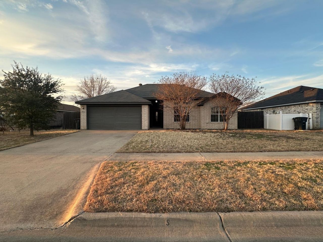 Welcome to this beautifully refreshed 3-bedroom, 2-bath home located in a quiet neighborhood in Killeen. This home offers a spacious open layout with high ceilings, tons of natural light, and a cozy brick fireplace that makes the living room feel warm and inviting. The entire interior has been freshly painted and features updated carpet in the master bedroom, along with modern ceiling fans throughout. Both bathrooms have been updated with new vanities and sinks, giving them a clean and modern look. Multiple electrical outlets have also been updated. The kitchen is functional with plenty of cabinet space and all appliances included. While no remodel has been done in the kitchen, it offers a great opportunity for the next owner to update and customize it to their taste. Step outside to a large fenced backyard with a covered patio?perfect for relaxing, grilling, or entertaining. The yard also includes a peach tree and plenty of space for kids, pets, or future landscaping projects. This home is move-in ready and offers a great mix of comfort, space, and potential. Schedule your showing today!