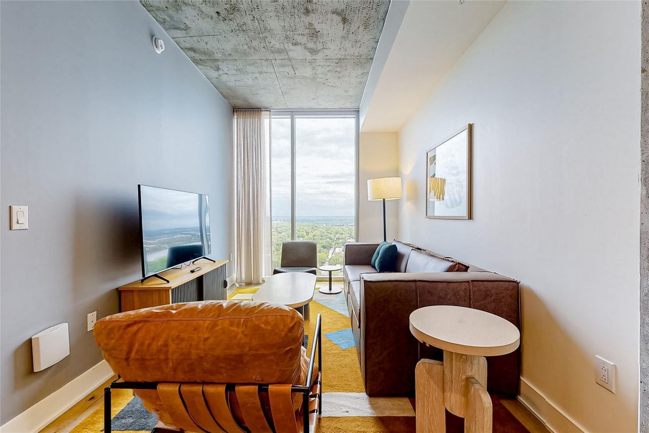 30th-floor, east-facing condo in the heart of downtown Austins Rainey Street District ? fully licensed and operating as a successful short-term rental. An ideal lock-and-leave second home with the flexibility to generate income when you're away.In 2025, the unit achieved 291 nights booked (approximately 80% occupancy), demonstrating strong, consistent demand in one of Austins most vibrant neighborhoods.Expansive windows frame stunning sunrise views of the city skyline and Lady Bird Lake, filling the open-concept layout with natural light. High ceilings, recessed lighting, crisp white walls, and warm luxury vinyl plank flooring create a clean, modern aesthetic.The kitchen features stainless steel appliances, open shelving, and generous cabinet storage. The spacious primary suite captures panoramic city and lake views and includes a spa-inspired ensuite bath with dual vanities and an oversized walk-in shower. Ample closets and storage enhance everyday comfort and functionality.Residents enjoy resort-style amenities including a rooftop pool with skyline views, state-of-the-art fitness center, game room, dog park, and lobby coffee shop. Valet parking is complimentary for owners with a parking pass, adding convenience and ease for both personal use and guests.Walk to Rainey Streets top restaurants, live music, and nightlife, plus direct access to Lady Bird Lake hike-and-bike trails and kayak rentals. Minutes to UT, the Capitol, metro rail, and Austin-Bergstrom International Airport.Experience elevated downtown living with flexibility, convenience, and iconic Austin energy right outside your door.
