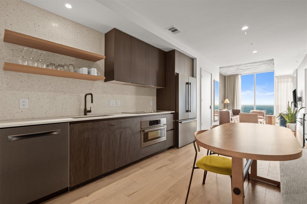 This is your chance to own a piece of Austin's dynamic skyline at Natiivo Austin, an iconic high-rise located near the heart of Rainey Street, one of the citys trendiest areas. The flexible nature of this property allows for full-time living, part-time use, or short-term rentals, making it an ideal investment or a luxurious retreat. Natiivos top-tier amenities make living here effortless, with 24-hour concierge service, a rooftop pool offering panoramic views of the city, shaded cabanas, and a spacious outdoor lounge perfect for both relaxation and entertaining. Fitness enthusiasts will love the state-of-the-art gym, featuring yoga and Peloton bike studios, and the coffee bar adds a welcoming touch to your daily routine. Pet amenities ensure your four-legged friends are just as well taken care of. Situated on an upper floor, this unit is a quiet escape from the hustle of Rainey Street, offering picturesque views of Lady Bird Lake and stunning sunrises from its private balcony. Inside, the modern, open-concept floor plan is bathed in natural light, thanks to expansive floor-to-ceiling windows. Custom design touches throughout set this unit apart from others in the building, adding a sense of sophistication and individuality. The layout flows seamlessly, providing a perfect space for entertaining or unwinding. The condo is just steps away from Lady Bird Lake, with access to the Hike-and-Bike Trail, and a stone's throw from the dining and entertainment options along Rainey Street. This is more than just a condo; its an opportunity to immerse yourself in Austins signature lifestyle while enjoying the quiet comfort of home.