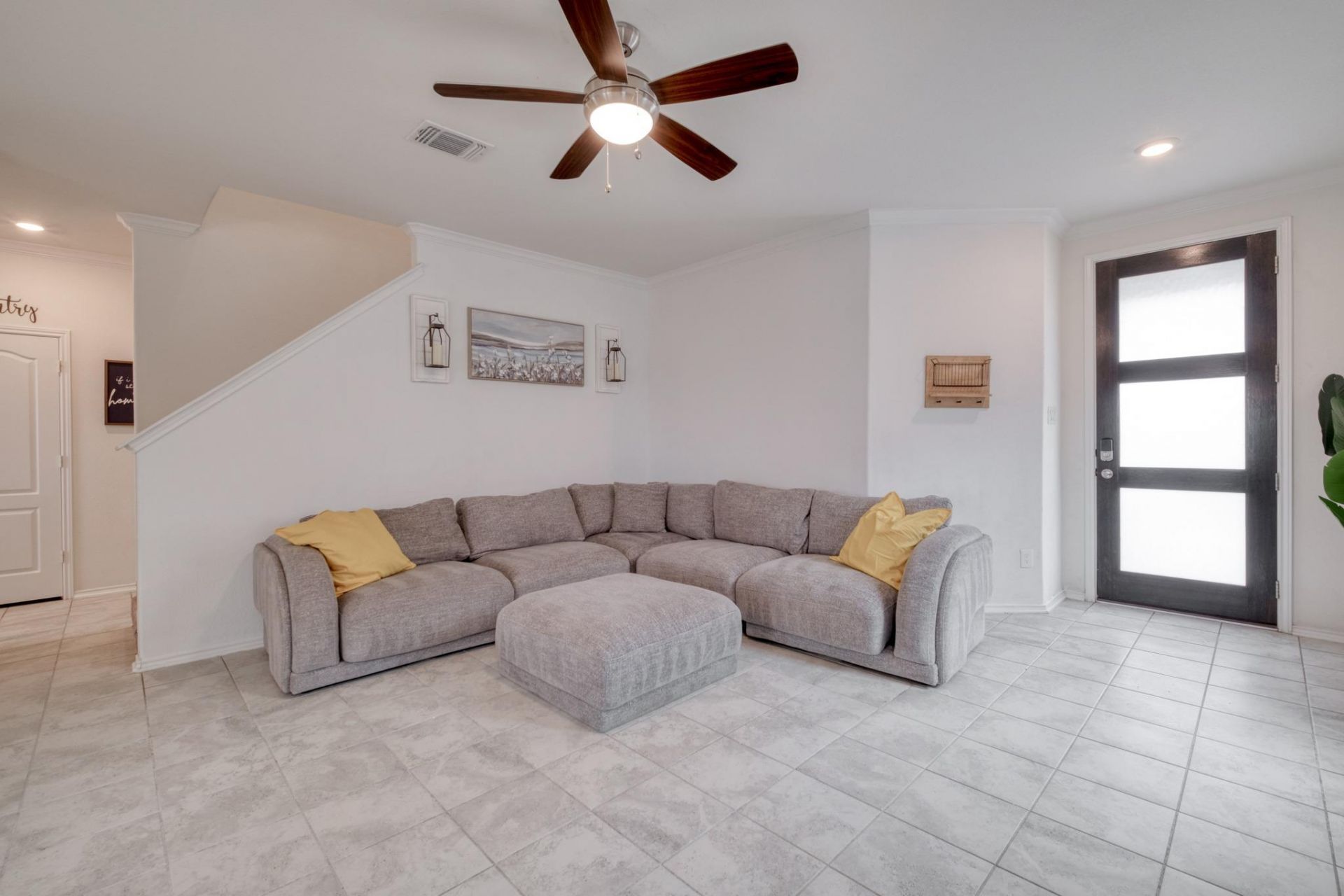 This two-story home, with no rear neighbors, offers 1,908 square feet of living space in the Sonterra West community. The functional floor plan includes three bedrooms, two-and-a-half bathrooms, and two distinct living areas. The interior is finished with a combination of tile and carpet flooring. The kitchen is equipped with granite countertops and energy-efficient appliances, including a microwave, stove, dishwasher, and refrigerator. The primary bathroom also features granite countertops and walk-in shower. For enhanced energy efficiency, the home is outfitted with a Nest thermostat and Energy Star qualified central air and electric heating systems. The HVAC system is approximately 3.5 years old. Recent exterior and functional improvements include the installation of a pergola in the backyard in June 2025, an electric car charger with conduit added in April 2024, and new stone borders around the trees and flower beds completed in March 2026. The home is located within the Jarrell Independent School District and is zoned for Igo Elementary, Jarrell Middle School, and Jarrell High School. Residents have access to Sonterra West HOA amenities, which include a clubhouse, multiple swimming pools, parks with BBQ pits, playgrounds, and walking trails. This property is situated with convenient access to Interstate 35, providing a direct commute to Georgetown and Austin.