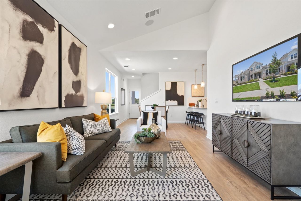 The Porch is an inviting lock-and-leave community 1 mile away from all the local dining, boutique shopping, and entertainment that charming Historic Downtown Buda has to offer. The Laurel floorplan is a favorite, boasting an airy and inviting feel with vaulted ceilings, ample natural light, open-concept living, and a downstairs primary suite. Additionally, there are 2 bedrooms upstairs + a second living area. All appliances are included?washer, dryer, and refrigerator?making a move effortless. Enjoy your spacious front porch, perfect for morning coffee or evening relaxation. Additional perks include a two-car garage with alley access and ample storage space. Zoned to highly rated Buda schools! Receive $10,000 in flex cash when using preferred lender, CMG Financial. Teachers, veterans, and first responders-- ask about our Heroes Program for additional incentives! All homes in The Porch come with a 1-2-6 Homes of Texas Warranty for peace of mind + Prominence Homes offers a new home orientation and blue tape walkthrough with a dedicated construction manager. Blending classic Southern charm with modern comfort, these townhome-style condominiums are set in a community featuring sidewalk-lined streets, creating a welcoming and connected atmosphere. Dont miss your opportunity to own in one of Budas most charming and unique communities?schedule your tour today. Model Home is open to public from Thursday-Sunday; Monday-Wednesday by Appt Only. **Photos are of model home. This home is across the courtyard.**