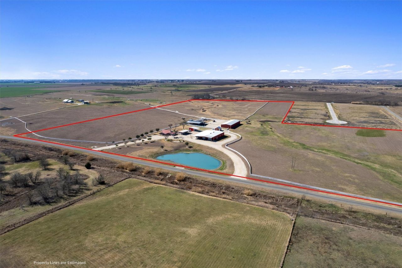 Prime 50-acre Texas ranch estate ideally located near Hwy 79, offering exceptional accessibility with panoramic views stretching for miles. This expansive tract combines privacy with convenience ? a rare balance in todays market. Close proximity to Hwy 79 provides efficient travel while maintaining the peaceful setting of wide-open Texas countryside. Gently rolling acreage offers versatility for livestock, agricultural production, grazing, or recreational enjoyment. A scenic pond enhances the landscape and creates a tranquil focal point beneath expansive Texas skies. The property is well-equipped with functional improvements, including a substantial insulated shop with multiple overhead roll-up doors ? ideal for collectors, automotive enthusiasts, equipment storage, or serious workshop space. Additional amenities include a private guest bunkhouse, large, covered tractor/RV shed, and covered cattle corral ready for livestock management. The charming 1955 farmhouse features 3 bedrooms, 1 bath, and warm wood floors, providing comfortable living accommodations for full-time residence or a weekend retreat. Opportunities to secure 50 acres with infrastructure, views, and proximity to a major Texas highway are increasingly rare. A compelling blend of accessibility, functionality, and enduring land value.