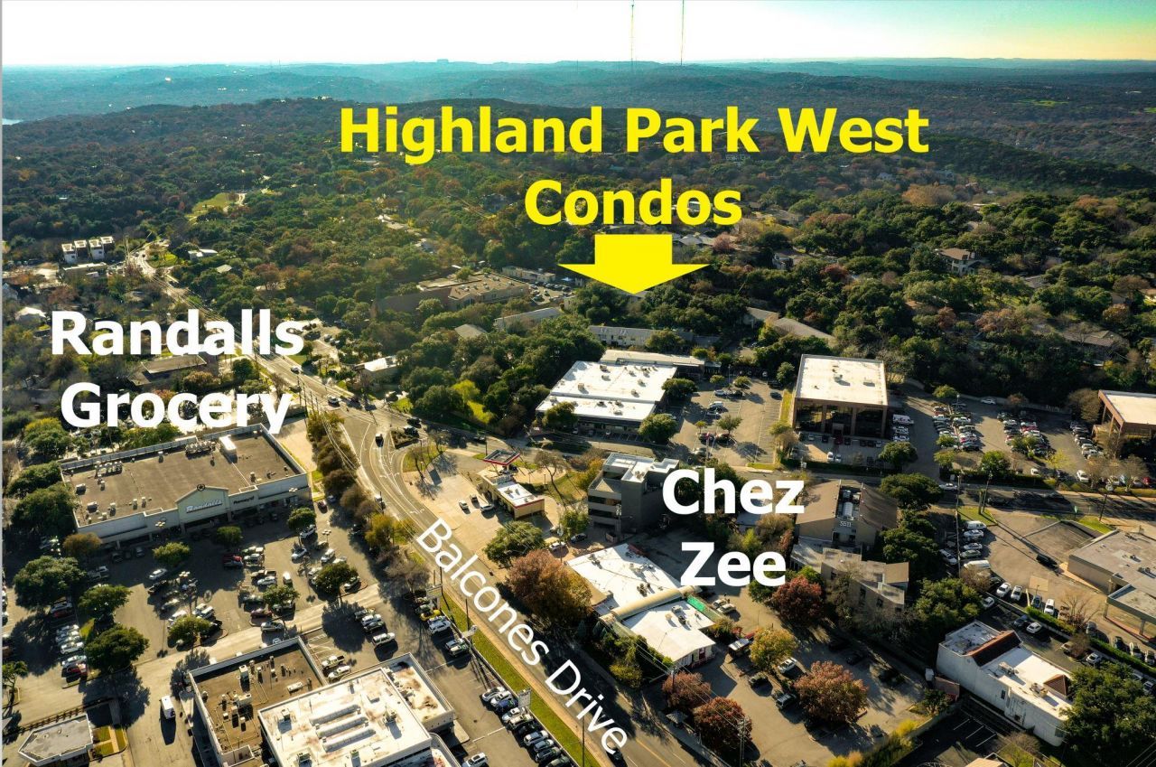 They don't make 'em like this anymore! Very nice sized 2 bed 2 full bath in Highland Park West lives more like a home. It sits in the middle of a luscious green lawn with an incredible stand of beautiful huge old oaks in Highland Park West. A rare condo with 3 sides of large windows looking out on this oak grove. Lots of natural light with super views throughout! This may be the best location in the community for these views. It overlooks a really large swimming pool that you can actually swim laps in! 2nd floor unit/no one above. Quiet! Freshly repainted. Attractive light colored plank wood floors. Vintage appealing colored tile & fixtures in both bathrooms. Two reserved parking spaces. Loads of guest parking. Truly walkable to nearby several quality restaurants & coffee shop. Randalls grocery store across the street! Fire station diagonal from entrance. Near major crossroad of MoPac & 2222/Koenig/Northland. Hot water and gas included in reasonable HOA dues. Well run and well kept! This is an exceptional property to make a home in!