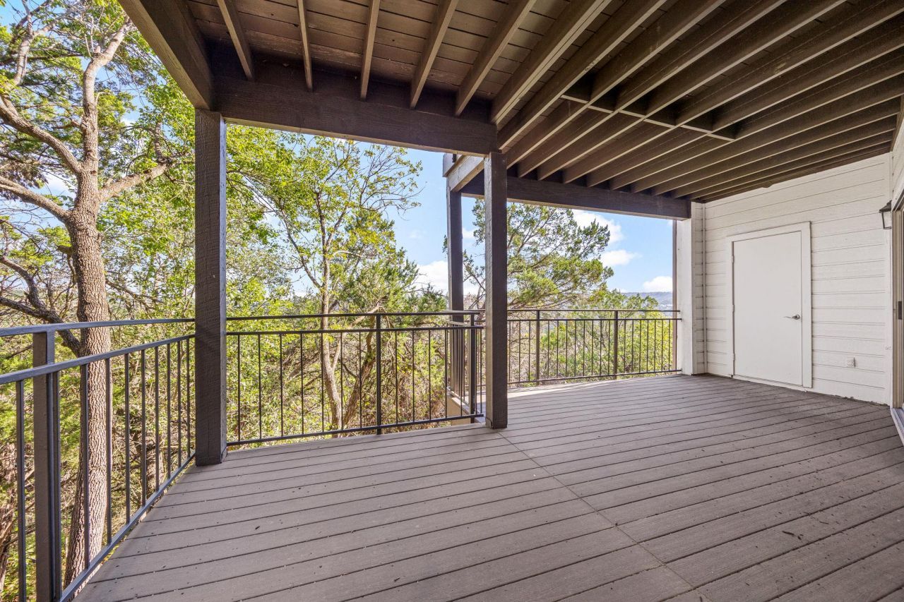 Perched above the rolling hills, this stunning 2-bedroom, 2-bath condo offers sweeping views and an unbeatable Austin location. Inside, enjoy modern updates throughout, including newly installed luxury vinyl plank flooring and carpet, granite countertops, and a full appliance package with refrigerator, washer, and dryer?all conveying with the home. The HVAC and water heater have both been replaced within the last few years, ensuring comfort and peace of mind. A beautiful wrap-around balcony provides privacy and an ideal space for relaxing or entertaining while taking in the scenic hill country views. The community recently replaced its metal roof and offers exceptional amenities, including a well-equipped gym and sparkling swimming pool. Perfectly situated near hiking trails, the greenbelt, Lake Austin, and the iconic Pennybacker Bridge, this home blends tranquility and convenience in one exceptional package.