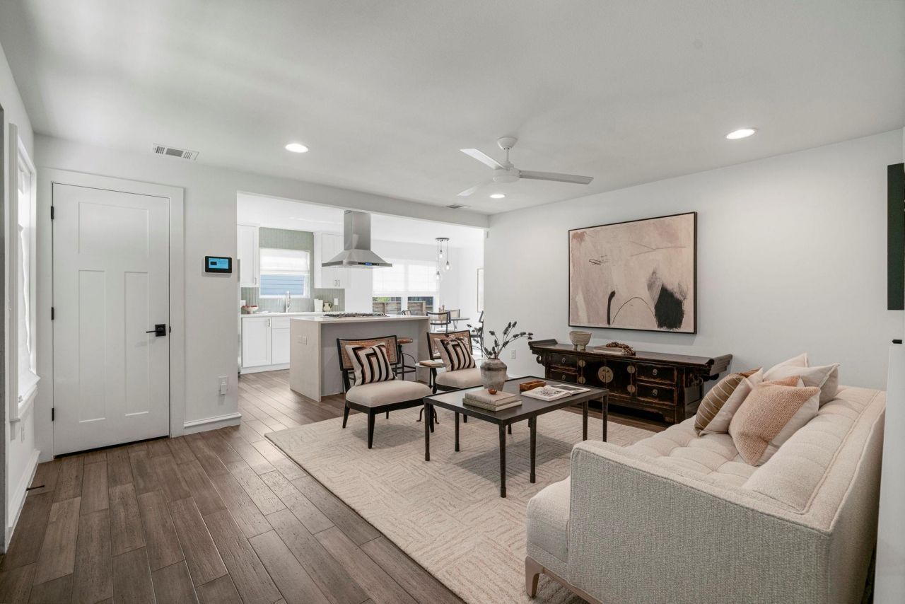 This two-bedroom (plus office) and a 357-square-foot garage with epoxy floor, is tucked into one of Austin's most beloved zip codes. 605 Harris Avenue places you right in the heart of everything that makes central Austin so special. Walk to beloved Lee Elementary, walk/bike to UT, and spend your weekends exploring the neighborhood's charming coffee shops, restaurants, and tree-lined streets. It's the kind of location that makes daily life feel a little easier and a lot more enjoyable. At 1,336 square feet, this warm and welcoming two-story flows naturally from the moment you walk in. The kitchen is the heart of the home, designed to be used and loved with a full Bosch stainless steel appliance package, quartz countertops, and a beautiful waterfall island that's equal parts prep space and conversation starter. The kitchen opens gracefully into the dining and living areas, keeping everyone together whether you're hosting a dinner party or cooking a quiet weeknight meal. Engineered wood and tile floors run throughout, adding warmth and character at every turn. The covered front porch is the kind of spot you'll linger on longer than planned, and out back, two rear decks invite you to slow down and enjoy morning coffee, an evening glass of wine, or a little weekend gardening. Upstairs, the primary suite is a true sanctuary with a spacious walk-in shower and double vanities. The second bedroom sits conveniently near the full hall bath, comfortable for family or guests alike. Connected to the home by a deck, the dedicated office pod offers a quiet, finished workspace completely separate from the main living areas, perfect for focused work or a creative studio. The oversized epoxy-floored garage adds even more flexibility as a home gym or workshop. Buyer to verify all info.