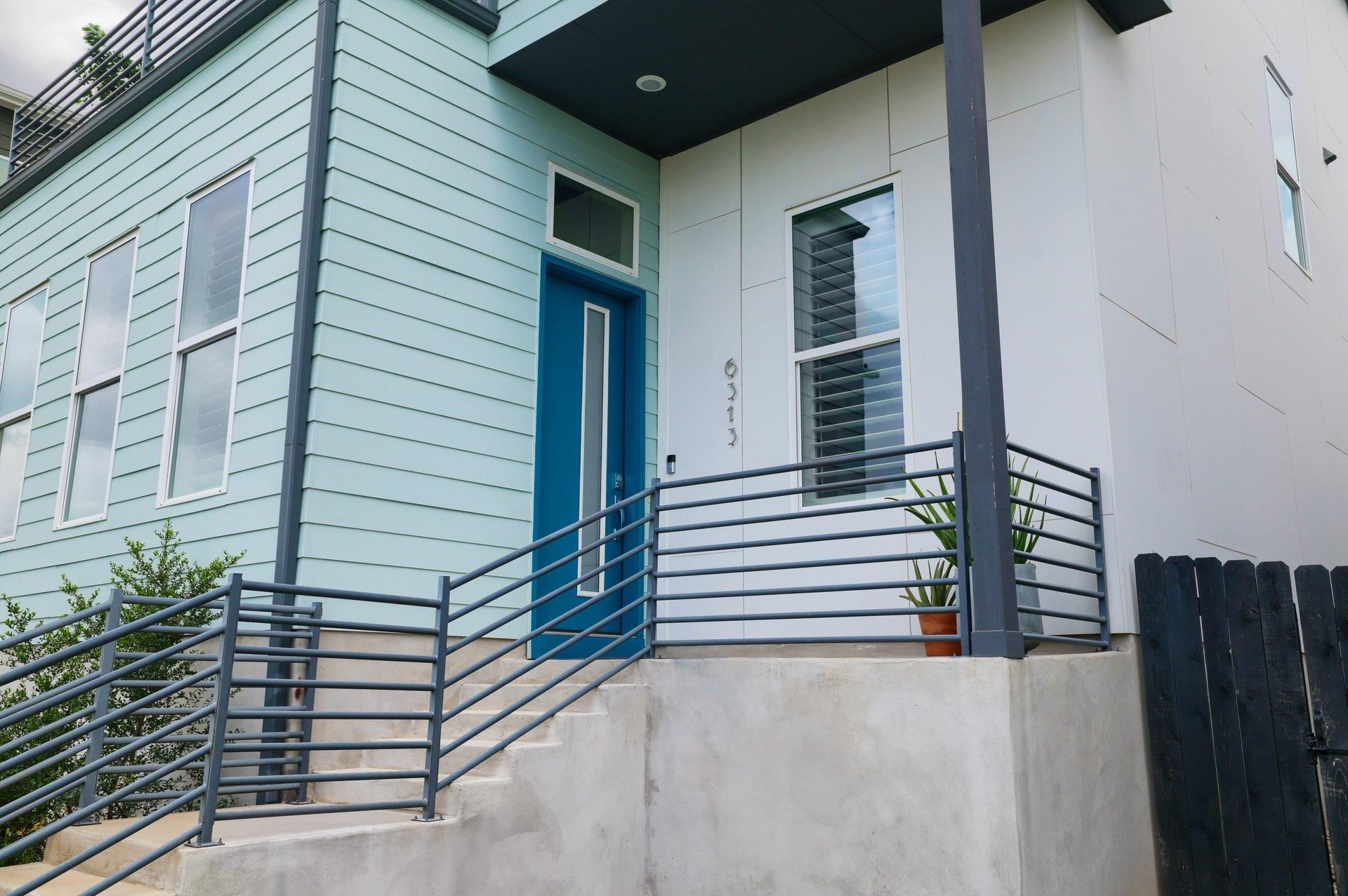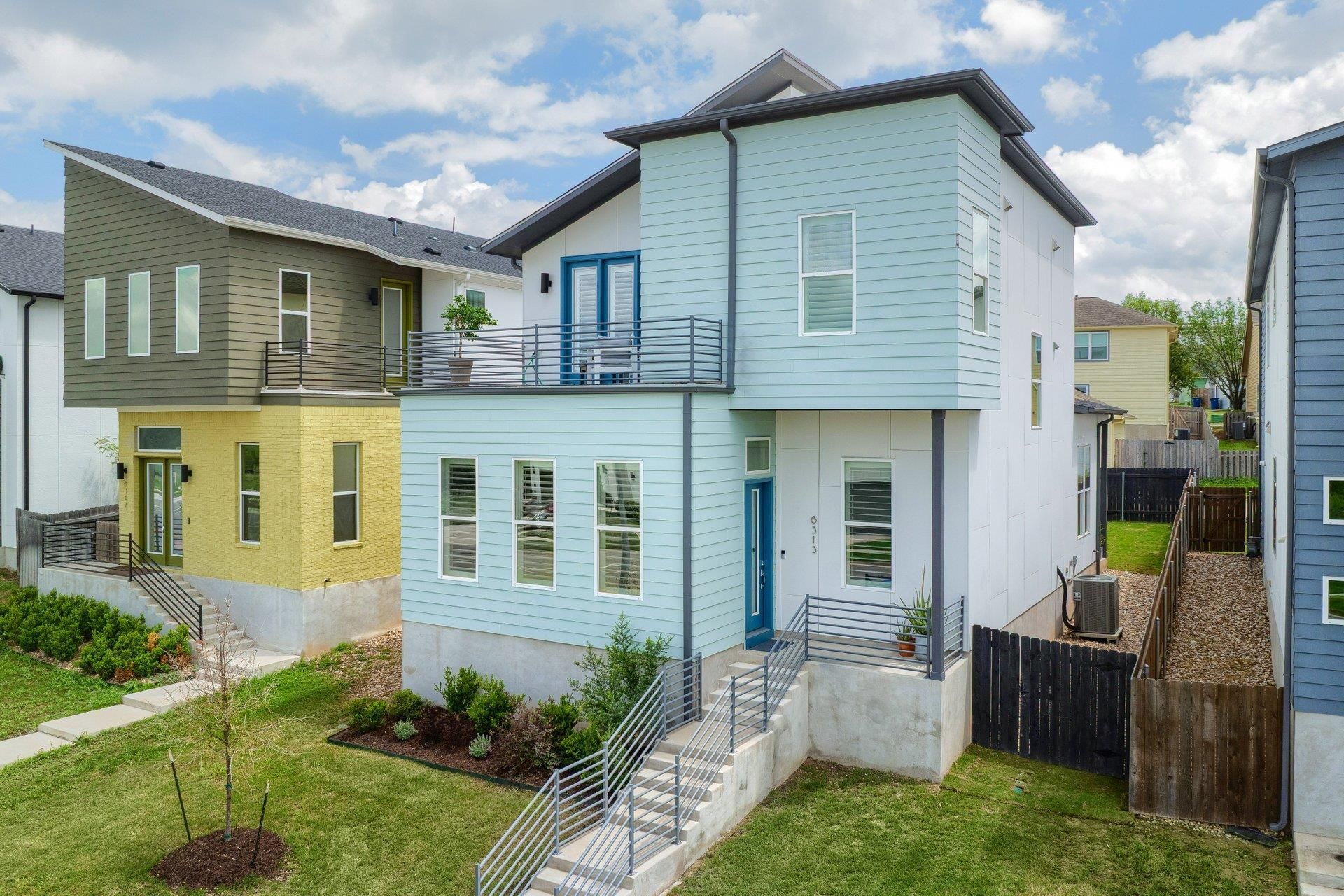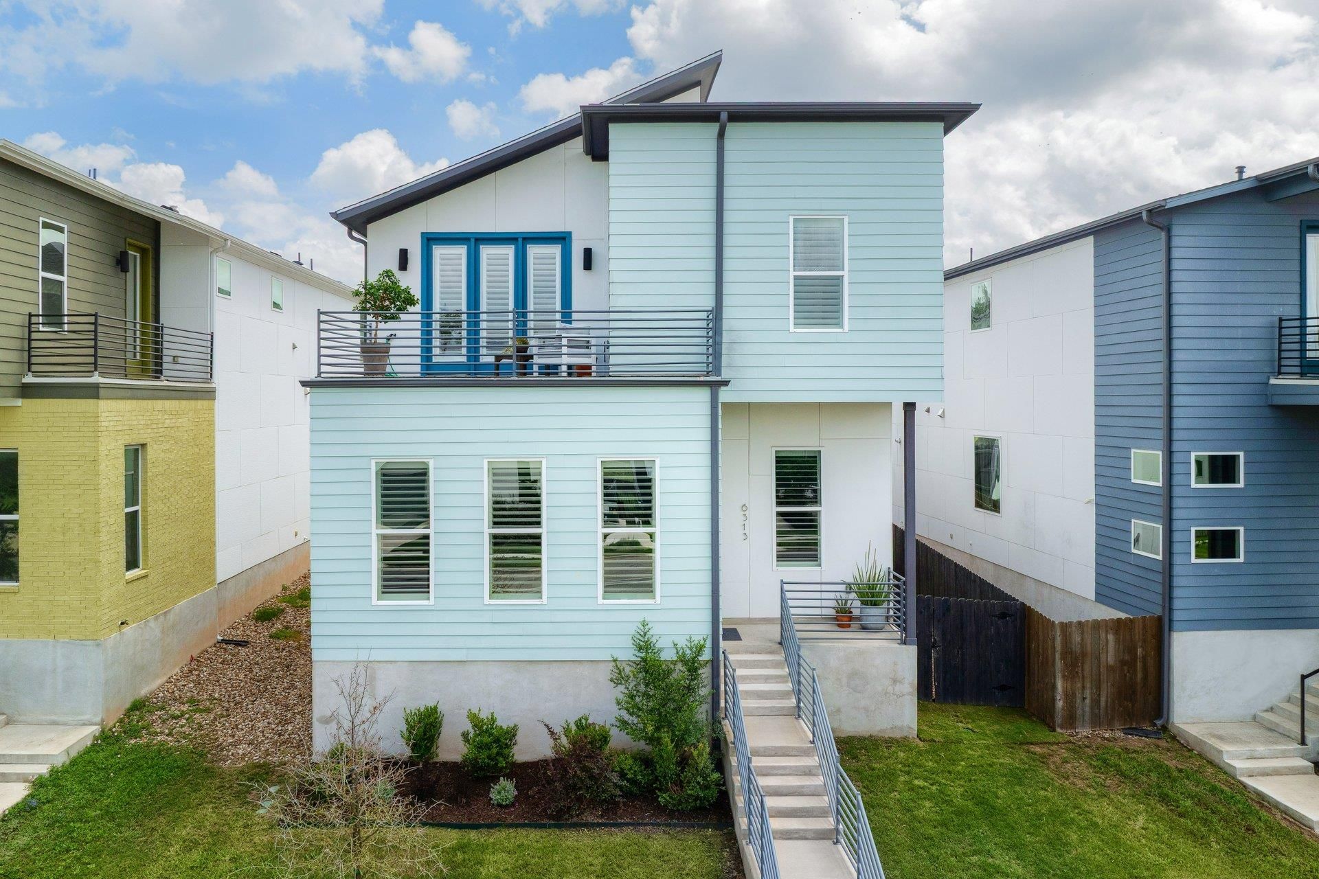 Welcome to one of the most desired floor plans in Agave. This better-than-new house is definitely the best in the neighborhood and is priced to sell fast! A covered front porch invites you into the living area, dining area and kitchen which are flooded with natural light. Luxurious engineered wood flooring, sleek lines, and large windows with custom shutters and blinds follow you throughout the entire house featuring 12 ceilings - and some even higher! The modern kitchen features a large island, soft close cabinets, Bosch appliances, quartz countertops and walk-in pantry. Also featured on the main floor is a guest suite with a full bathroom and upgraded walk-in shower. Located off the living room, is another bedroom that overlooks the front yard. which would make an ideal office. Toward the back of the first floor is a studio/flex space with french doors that open to a covered back porch and grassy private backyard. Head up the staircase and youll find the perfect primary bedroom with vaulted sloped ceiling and more french doors leading to a deck with panoramic views of wooded areas and downtown Austin. The fully equipped ensuite bathroom has two generous walk-in closets that lead to a tiled laundry room. Also on the second floor is an additional ensuite bedroom with lots of light and more views! The two car garage is accessed from the paved back alley. It has a huge shelving unit for storage and a 240 volt outlet for your car charger. If it sounds like this house has everything, well it does! Builder warranty on foundation and structure will transfer to the new owner of this energy efficient home. This house is conveniently located 10 minutes from Mueller, 15 minutes from the Domain, downtown, UT, the airport, and all the fun Eastside hotspots. Large tech companies in close proximity include Tesla and Samsung. Major developments planned near Agave include: Colony Park, a new rail line and more!
