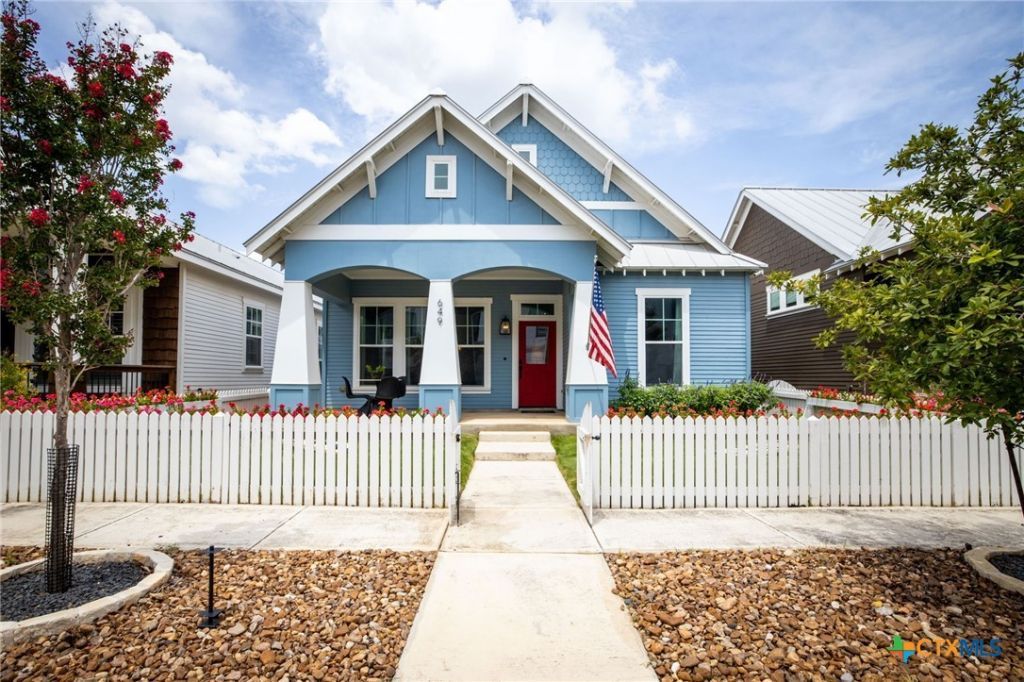 Experience elevated Hill Country living in this beautifully designed cottage craftsman home, ideally situated in the heart of the sought-after Town Creek neighborhood of New Braunfels. This thoughtfully crafted single-story residence offers a walkable, lock-and-leave lifestyle just steps or a short golf-cart ride from Landa Park, downtown New Braunfels, Das Rec, scenic trails, dining, and local events. Inside, soaring 17-foot vaulted ceilings, refined craftsman details, and a striking stone island create a warm yet sophisticated atmosphere. Flexible living spaces, exceptional storage, and low-maintenance outdoor design make this home as functional as it is inviting, offering the perfect blend of comfort, character, and lifestyle.