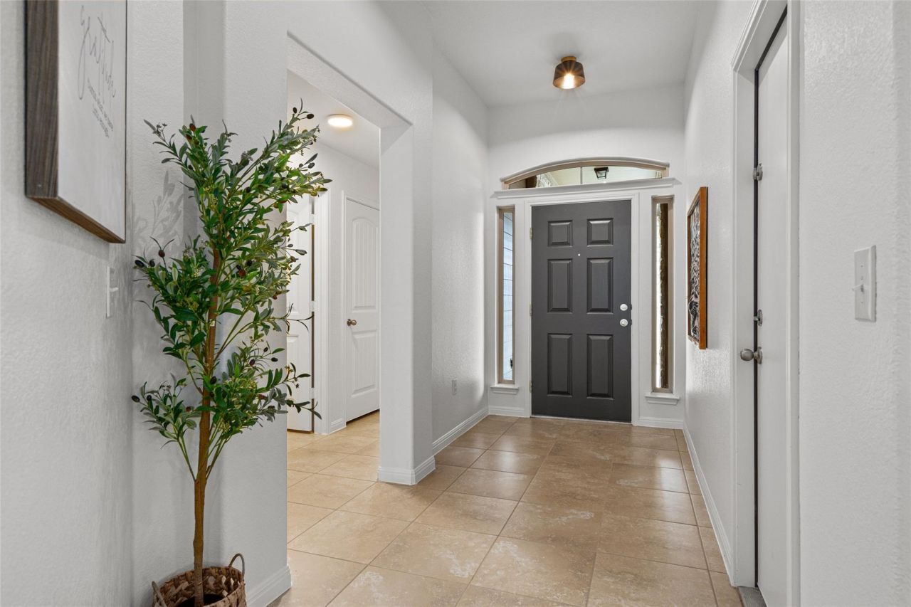 Beautifully maintained single-story home in desirable Northside Meadow offering timeless curb appeal and bright, open living spaces. A charming stone exterior and covered front porch welcome you inside to soaring ceilings, abundant natural light, and durable tile flooring throughout the main living areas. The open-concept layout flows seamlessly from the spacious living room?complete with modern ceiling fans and large arched windows?into the dining area and kitchen, making it ideal for both everyday living and entertaining. The kitchen features granite countertops, rich dark cabinetry, stainless steel appliances, and a breakfast bar, all overlooking the main living space. The thoughtfully designed in-law floor plan offers excellent privacy and flexibility, featuring two large secondary bedrooms tucked away in a separate corner of the home with a full secondary bathroom, ideal for guests, family members, or a dedicated home office setup. The primary suite is privately positioned and provides a peaceful retreat with high ceilings, extra large walk-in closet, and lots of natural light. Fresh interior paint throughout adds to the crisp, move-in-ready appeal. Lots of closet and storage options inside! Enjoy outdoor living with a covered back patio and fenced backyard, perfect for relaxing or hosting guests. Located within walking distance to H-E-B Plus, just under 1 mile from the Leander MetroRail station with direct access to downtown, and minutes from 183 and 183A, this home combines comfort, convenience, and connectivity. Community amenities include a pool and playground, with nearby retail, dining, and entertainment options close by. Close to Northline, Leander's new downtown district! Recent updates include new roof shingles installed in 2025 for added peace of mind. A move-in-ready opportunity in a thriving Leander location.
