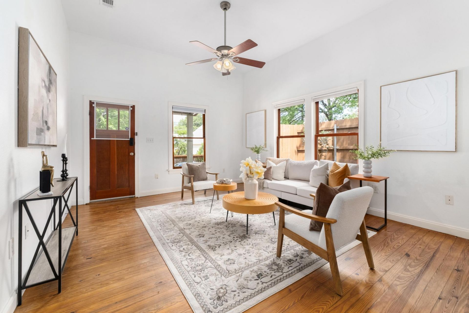 Discover the ease and energy of life in Central East Austin, where vibrant city living meets everyday convenience. Located just minutes from downtown, Lady Bird Lake, and the buzz of East 6th and East 11th, this home places you at the center of some of Austins best restaurants, coffee shops, parks, and local favorites?all while maintaining a surprisingly serene neighborhood feel.This thoughtfully designed single-story home features two bedrooms and one full bathroom, with high ceilings and warm wood flooring that create an inviting sense of space and character. Unique architectural touches, including ornate wood doors, add personality and charm throughout.The layout is both functional and comfortable, offering a dedicated living area, a walk-in closet, and flexible space for a home office or creative use. Recent upgrades provide peace of mind and modern convenience, including a recently installed HVAC system, updated fencing, and updated appliances such as a washer, dryer, stove, and dishwasher.Enjoy seamless indoor-outdoor living with both a welcoming covered front patio?perfect for morning coffee and connecting with the neighborhood?and a private covered back patio ideal for relaxing or entertaining. The low-maintenance yard and rare one-car garage with alley access add both practicality and flexibility in this highly sought-after location.With walkability to Whole Foods, nearby parks, public transit, and hike-and-bike trails, plus quick access to the airport in under 15 minutes, this home offers the ultimate balance of lifestyle, location, and livability.Whether you're looking to settle into East Austin or invest in a property with long-term potential, this home is a compelling opportunity in one of the citys most dynamic neighborhoods.