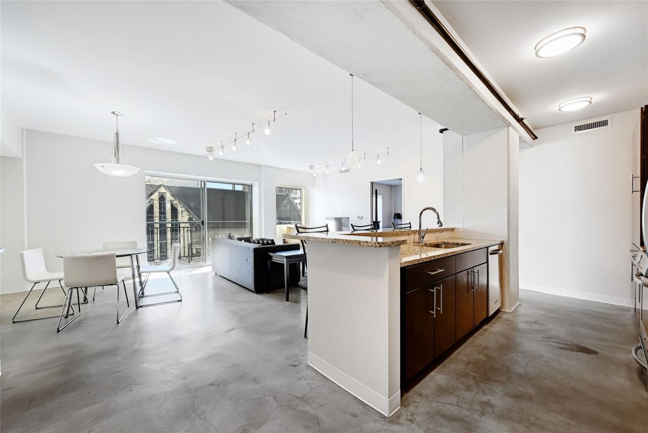 Experience the best of Austin right outside your door in this stylish 1-bedroom, 1-bath condo in the heart of downtown. Available for immediate move-in and offered fully furnished. Just steps from premier restaurants, nightlife, and entertainment, this urban retreat offers the perfect blend of vibrant city living and modern comfort. Inside, youll find polished concrete floors, soaring ceilings, and a spacious open-concept layout ideal for relaxing or entertaining. The sleek kitchen features granite countertops, stainless steel appliances, and a breakfast bar that flows effortlessly into the living area. Natural light floods the space through a wall of glass that opens to your private balcony?perfect for morning coffee or evening city views. The tranquil bedroom includes a generous walk-in closet and floor-to-ceiling windows with more stunning urban scenery. The spa-inspired bathroom boasts both a garden tub and a walk-in shower for the ultimate in-home escape. A convenient in-unit laundry closet adds to the everyday ease. Residents enjoy top-tier amenities including a full gym and a rooftop patio?ideal for remote work, sunset lounging, or hosting friends. Come see downtown living at its best. Electric, water, waste water, and trash are included. Garage parking is available to lease across the street at 206 E 9th. Apply via RentSpree:https://apply.link/Q5aH9NA