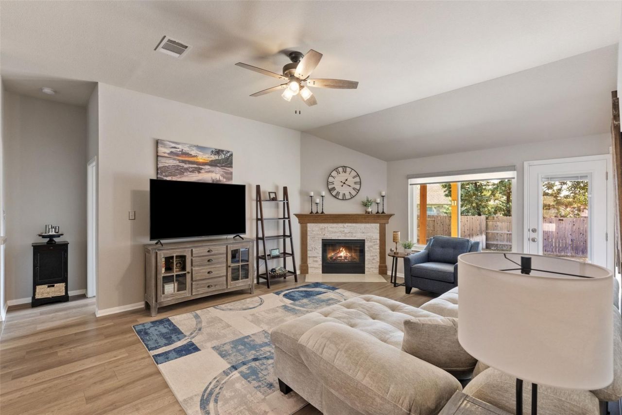 MUST SEE this immaculate one-story living in Teravista! Welcome to 809 Meadow Bluff Ct, a beautifully maintained 1,701 sq ft home priced at $365,000 in the popular Teravista golf subdivision of Round Rock. Built in 2006, this thoughtfully designed home offers three bedrooms and two full baths - ideal for flexible living, guests, or hobbies. The spacious owners suite features a walk-in closet, double vanities, stand-alone shower, and soaking tub. The open floor plan is perfect for entertaining and includes granite countertops, stainless steel appliances, pantry, and gas range. The main living area showcases natural light, a beautiful fireplace with a wooden mantle and upgraded flooring. Tile flooring in kitchen and hallways. Enjoy a private fenced backyard with covered patio, extended patio with pergola, perfect for grilling and enjoying a spacious backyard. Additional features: Laundry room with storage; barn door style entry to Primary bath and upgrades throughout. Located near IKEA, Round Rock Premium Outlets HEB and a wide choice of restaurants. Priced to sell quickly.